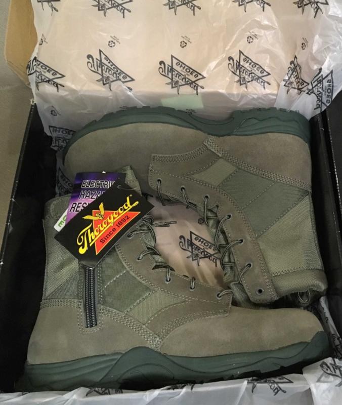 Берці Thorogood з USA Профессиональные берцы с высокопрочной композитной вставкой в носке для защиты пальцев ног. Сезон весна – лето Цвет оливково-зеленый Размер - 45 или 30 см стелька (полная длина стельки от края до края 30,5 см) Американский размер на бирке 12US Thorogood американская компания, выпускающая обувь с 1892 года ВЫСОТА: 8 дюймов (стандартная военная высота) ВЕРХ: 100% кожа + вставки из нейлона Cordura с плотностью в 1000 день. Боковая молния для быстрого надевания. Эластичная подошва из вспененного термопластичного полиуретана. Подкладка выполнена из прочного материала с отверстиями среднего размера для циркуляции воздуха. Надежные и удобные ботинки. Берці НОВІ! 100% оригинал в оригинальной коробке! Натуральная 100% кожа!