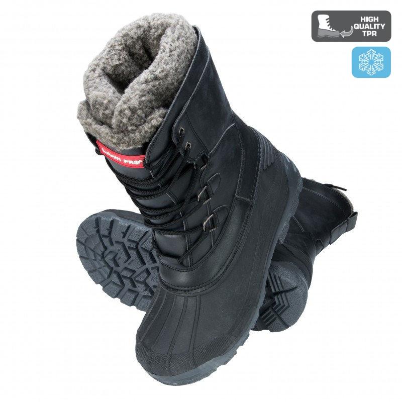Размеры: 41, 42, 43, 44,45 - Материал: Искусственная кожа - Упаковка: Картонная коробка - Подошва: Термопластичная резина Описание: Теплые черные полусапоги из искусственной кожи с оригинальной подкладкой из серой мехового трикотажа и фольги для удержания тепла и непропускания холода. Качественная подошва из термопластичной резины. Металлические петельки и отверстия для шнурков. Красная брендовая нашивка.