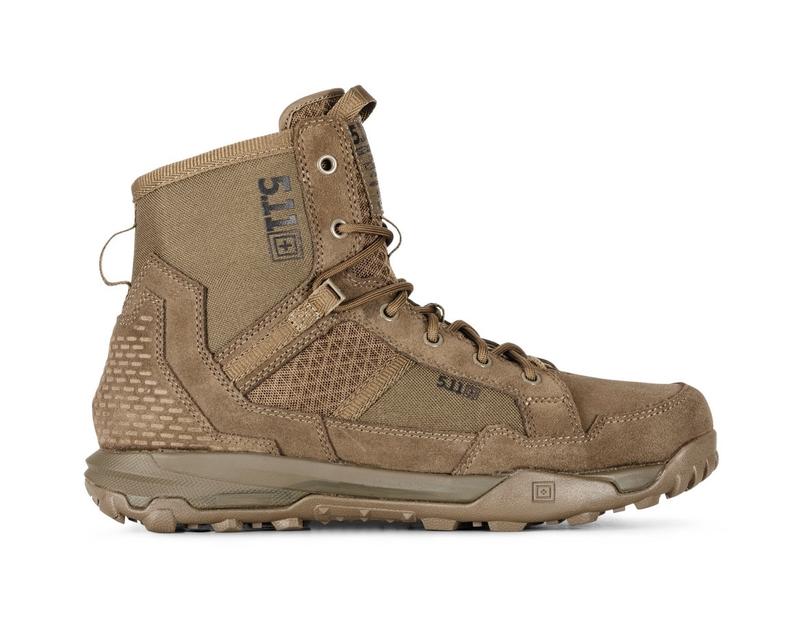 Ботинки 5.11 A/T 6" Boot -- частина нової лінійки взуття під назвою All Terrain Load Assistance System Technology від знаменитого бренда 5.11 Tactical. Технологія A.T.L.A.S. це акронім від All Terrain Load Assistance System, що можна дослівно перевести як «вседожна система підтримки під час перенесення вантажів». Це передбачає комбінацію двох типів поліуретанової піни, що стабілізує супінатора A.T.L.A.S. і устілки з піни Ortholite®. A/T 6" Boot має агресивний малюнок протектора, який гарантує гарне зчеплення на різних поверхнях. Завдяки цим особливостям модель черевиків дає змогу тривалий час комфортно носити важкий рюкзак, бронежилет тощо спорядження як у польових, так і в міських умовах. Ця пара взуття має полегшену конструкцію, що зменшує їхню вагу та забезпечує вентиляцію в умовах спекотного літа. Петлі на язичку та щиколотці сприяє швидкому та комфортному одяганню. - Устілка Ortholite® - Зносостійкий нейлон - Супінатор 5.11® A.T.L.A.S для підтримки стопи - Строба ззаду для зручного одягання та шнурівки - Стійка до ковзання, олива/бензостійкість підошва - Зроблені з водовідштовхувальної замші та міцної нейлонової сітки - Комбінація пружинної PU піни Echo FoamTM і ударопоглинальної PU піни Force FoamTM