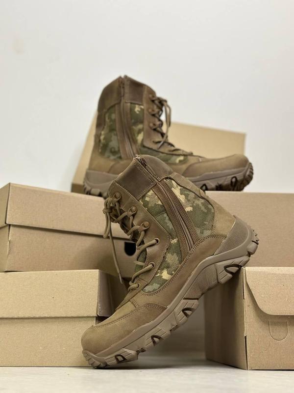 Кілька примірників у наявності Берці виготовлені з високоякісної натуральної шкіри, доповнені вставками із матеріалу cordura виробництва USA з водонепроникним просоченням, яка має високу міцність, стійкість до розривів і вологостійкість. Крім того, вставки з кордури полегшують взуття і покращують вентиляцію ніг, забезпечуючи ефективне потовиділення. Збоку берці оснащені блискавками, що полегшують взування. Мають посилений носок та п’яту для захисту пальців та п’ятки стопи. Всередині утеплені набивним хутром, що надає хороші теплозахисні властивості, легке, стійке до зношування (витривалість до -20). Підошва виконана з матеріалу ТЕП, що має високу зносостійкість, малу вагу та хороше зчеплення з поверхнею, надійно приклеєна. Підошва добре згинається і легко повертається до своєї форми, не сковує природні рухи ступні. Мають задній розширений ремінь, що не дозволить розійтись шву. Міцні шнурки просочені водовідштовхуючим розчином, що робить їх більш зносостійкими та запобігає розв'язуванню. Чудовий вибір для тактичних та польових умов. Верх: натуральна Crazy шкіра щільністю 1.4-1.6 мм, cordura Утеплювач: хутро Підошва: ТЕП Устілка: хутро Вага напівпари: 610 г Сезон: зима Вид тактичного взуття: Берці Розмір: 40