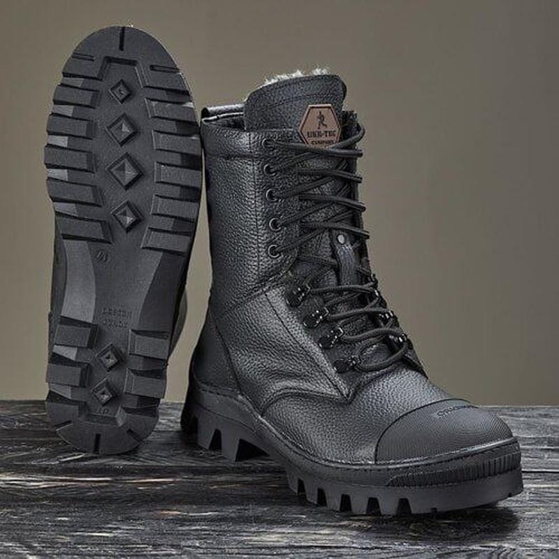 🖍Берцы "Киборг" зимние Артикул: 0423 💵Цена 2599грн. Поверхность обуви выполнена из высококачественного ВРХ ( небольшого рогатого скота) кожи, кожа проходит гидрофобную обработку (способствует устойчивость к влаге, слякоти и снегу); -Присущая резиновая накладка на носовой части обуви (защищает от прямых и до несомненных ударов); -швы прошиты и проклеены надежным образом, а также проходят гидрофобную отделку; -Шнурки из качественного нейлона (не протираются), четко фиксируют ногу и не давят на нее при ходьбе. Внутренняя часть обуви изготовлена из 90% шерсти (не промокает), температурный режим до -20*С. -стелька из шерсти, надежно сохраняет тепло и служит отличным изолятором. -задняя часть берцев четко фиксирует стопу Подошва берцов выполнена из вулканической резины (сплав каучука и резины), которая обладает следующими характеристиками: -Износостойкость; -Термостойкость; -Не трескается; -Не деформируется.