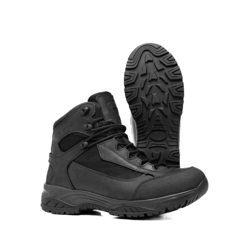 Верх изделия - кожа натуральная / нубук / + ткань CORDURA/сетка СОТЫ Подкладка – влагоотводная мембранная ткань Подошва – двухкомпонентная - полиуретан + нитрильная резина Стелька – анатомическая, вставная Вес полупары – 615 г. Размерный ряд с 36 по 46г. Цвет – черный