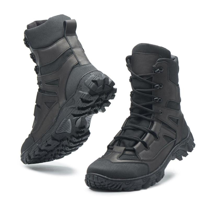 Берцы тактические 106 черного цвета из натуральной кожи и кордуры демисезонные, военная об...