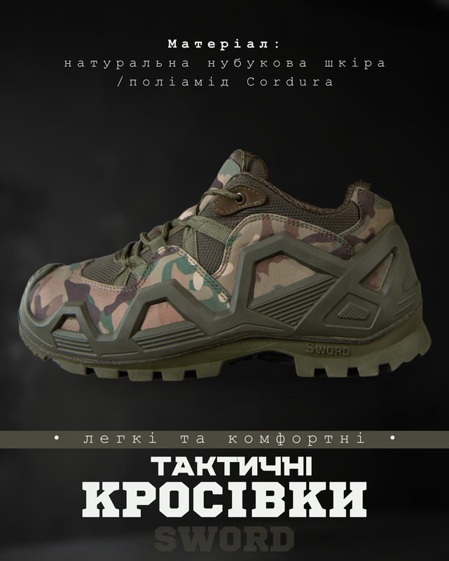 Особливості: * Дихаюча натуральна нубукова шкіра * Водовідштовхувальні текстильні вставки з поліаміду Cordura * Є дихаюча мембрана, завдяки якій можуть підійти для будь-яких погодних умов. * Лита зносостійка гумова підошва * Посилена зона під пальцями та задник з термоукріпленого матеріалу забезпечать захист від травм * Зручні у носінні Опис: Кросівки оснащені захисними елементами з термопластика, вставка в носі черевика захищає пальці від фронтального удару та від падіння важких предметів зверху, вставка в області п'яти дає додаткову жорсткість і фіксацію стопи. Подвійна зона пальців та подвійна п'ята, надають стійкості і за рахунок цього нога не ковзає. Характеристики: * Матеріал: натуральна нубукова шкіра /li> * поліамід Cordura * Підошва: гума * Колір: койот * Сезон: всесезонні * Виробник: Single Sword, Туреччина * Розміри: 40-45 Оригінал: 100% * Країна-виробник: Туреччина Метод кріплення підошви - вакуумно-термічний, з додатковою прошивкою, що унеможливлює відшарування підошви при високих навантаженнях. Є супінатор, він призначений для зменшення навантаження на склепіння стопи та кращої стійкості підошви. 40-27,5 41-28 42-28,5 43-29 44-29,5 45-30