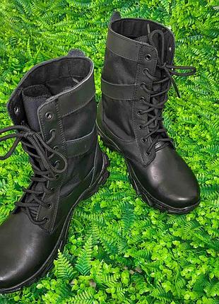 Берцы летние черные Материал верха: натуральная кожа «Краст»; Подошва: TEP; Подклад: х/б «диагональ черная» Цвет: Черный (Black) Летние берцы, изготовленные украинским из натуральной кожи типа «Краст», отлично зарекомендовали себя на рыбалке, охоте, на туристических маршрутах. Эта незаменимая обувь и для представителей охраны и военных. По бокам берцы имеют водоотталкивающую вставку, а пятка и носок имеют усиленную конструкцию. Это позволяет минимизировать риск травм стопы и пальцев. Берцы выполнены в точном соответствии ГОСТ 26167:2009, что разрешает их применение в качестве повседневной обуви в теплое время года. Берцы используют как в городской среде, так и в полевых условиях.