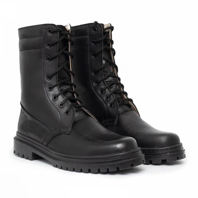 Черные демисезонные кожаные берцы с усиленным носком и пяткой с прошивкой и проклейкой на...