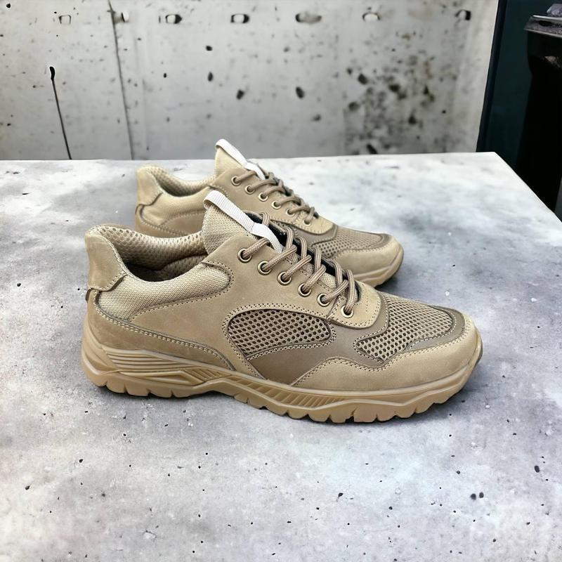 ## Тактические кроссовки лето 3Д-сетка песочный TR подошва стелька Air 1 PU 38-47 1 кг DM-11 Обувь произведена натуральной кожи (КРЕЙЗИ ХОРС). Очень крепкая подошва не убивающаяся TR (прошла тесты). Усиленная пятка и носок. Глухой клапан на языке.< br /> Стелька Натуральная кожа Прочная шнуровка Подкладка 3D сетка (без поролона) Цвет: Песочный Стелька Air - 1 PU Уменьшает нагрузку на стопу и повышает Ваш комфорт. Кожаное покрытие делает использование особенно комфортным, так как нога не потеет и не скользит в обуви даже в жаркое время года. Изделие равномерно распределяет нагрузку по стопе, уменьшает давление на связки во время ходьбы, оказывает плюсневую и продольную поддержку. Свойства подошвы: Не скользит Гибкая< br /> Стойка к истиранию и перепаду температуры Стойка к действию химических веществ. Прошита и проклеена. Размерная сетка: 38 - 25.5 см 39 - 26 см 40 - 26.5 см 41 - 27 см 42 - 27.5 см 43 - 28 см 44 - 29 см /> 45 - 30 см 46 - 30.5 см 47 - 31.5 см Вес пара 1 кг Успейте заказать, количество штук по акции ограничено! Остерегайтесь подделок и низкокачественного товара, его сейчас очень много представлено под видом oригинaлa! Мы предлагаем высочайшее добротное качество товара на рынке Украины, который выполняет свою функцию и от которого вы будете получать только приятные эмоции. Почему покупают именно у нас? Отзывы и рекомендации реальных клиентов Наш магазин имеет многочисленные положительные отзывы от довольных клиентов. Вы можете ознакомиться с их опытом и рекомендациями в описании ниже и на нашем сайте, что поможет вам сделать обоснованный выбор. Прозрачность и честность Мы ведем открытую и честную политику в отношениях с клиентами и всегда идем навстречу. Все характеристики товаров, условия гарантии и обмена четко указаны на нашем сайте, что позволяет избежать недоразумений и обеспечивает доверие клиентов. Легкая система возврата товаров Мы понимаем, что иногда товар может не подойти Вам по тем или иным причинам. Поэтому мы предлагаем гибкую и прозрачную систему возврата товаров, что обеспечивает вам спокойствие и уверенность в вашей покупке. Высокий уровень обслуживания клиентов, 10 лет опыта Наши специалисты всегда готовы предоставить профессиональную консультацию и помощь в выборе товара. Мы ценим каждого клиента и стремимся сделать процесс покупки максимально комфортным и приятным. Быстрая доставка и удобные условия оплаты Мы предлагаем быструю и надежную доставку по всей стране, а также разнообразные способы оплаты, включая наличный и безналичный расчет. Наши клиенты могут выбрать наиболее удобный для себя способ получения товара. ✅ Весь товар проверяется на наличие брака перед отправкой ✅ Отзывы наших клиентов Поторопись, товара по акции осталось всего 3шт! ✅ С заботой о каждом клиенте ✅ ДОСТАВКА ПО всей УКРАИНЕ: Мы качественно и надежно упаковываем все наши посылки, за сохранение содержимого можете не беспокоиться. Но все же просим проверять посылку на предмет повреждений непосредственно в отделении службы доставки, и в случае обнаружения повреждений составлять соответствующий акт с сотрудником службы доставки. Без акта о повреждении претензии не принимаются. Это редкие случаи, но при пересылке хрупких предметов иногда происходят. Поэтому во избежание недоразумений просим проверять содержимое посылки при получении. Смотрите наши другие объявления. Удач