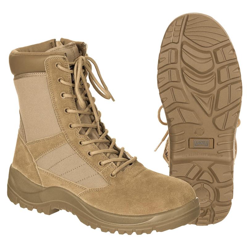 Берцы MAGNUM Centurion 8.0 Coyote от британского бренда Magnum, изготовленные компанией Max-Fuchs, - это надежная тактическая обувь, разработанная для демисезонного использования в экстремальных условиях. Они идеально подходят для военных, правоохранителей, охотников, туристов и любителей активного отдыха. Верх берцев выполнен из высококачественного нубука и замши коровьей кожи, что обеспечивает прочность и долговечность. Нейлоновые вставки способствуют вентиляции и уменьшают вес обуви. Водонепроницаемая обработка защищает от влаги, сохраняя комфорт в сырых условиях. Берцы оснащены двухкомпонентной полиуретановой подошвой, которая обеспечивает отличную устойчивость и не скользит даже на масляных поверхностях. Съемная стелька из EVA-пены поглощает удары, обеспечивая комфорт при длительном ношении. Отсутствие металлических деталей делает их безопасными для прохождения металлодетекторов, что идеально для использования в охранных структурах. Система шнуровки с прочными закрытыми крючками и боковая молния YKK с ремешком на липучке облегчают надевание и обеспечивают надежную фиксацию. Цвет Coyote идеально подходит для маскировки в пустынных и сухих условиях. Характеристики: - Материал: Нубук, замша коровьей кожи, нейлон - Подошва: Двухкомпонентная полиуретановая, противоскользящая - Стелька: Съемная, EVA-пена - Особенности: Водонепроницаемая обработка, боковая молния YKK, отсутствие металлических деталей, сертификация EN IS********** - Вес: ~442 г (один ботинок, размер EU 38) - Высота: 21 см - Производитель: Max-Fuchs (под брендом Magnum), Великобритания