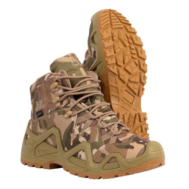 Тактические ботинки АК МТР Мультикам -- это надежная обувь, разработанная для военных, силовых структур, охотников и любителей активного отдыха. Они сочетают прочность, комфорт и защиту, что делает их идеальными для использования в суровых условиях. Верх ботинок выполнен из прочного полиэстера, который обеспечивает устойчивость к износу и долговечность, а дышащая мембрана поддерживает оптимальный микроклимат, отводя влагу и обеспечивая вентиляцию. Ботинки оснащены усиленным термопластичным носком и задником для защиты от ударов и травм, а также удобной скоростной шнуровкой с петлями, что позволяет быстро надевать и снимать обувь. Оптимальная высота берцев не пережимает ногу, что особенно удобно при длительном ношении или в тактических позициях, например, при стрельбе с колена. Подошва крепится литьевым методом, что гарантирует прочность и водонепроницаемость соединения. Доступны в цветах: мультикам, олива, черный и койот. Характеристики: - Материал верха: прочный полиэстер; - Подкладка: дышащая мембрана; - Метод крепления подошвы: литьевой; - Цвет: мультикам, олива, черный, койот; - Особенности: скоростная шнуровка, усиленная защита, водонепроницаемость.
