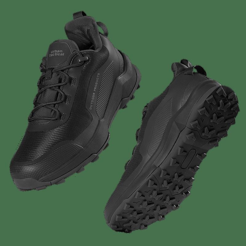 Універсальні кросівки UTS (Urban Tactical Sneakers) які підійдуть як повсякденне взуття, так і для активного відпочинку, туризму тощо. Розраховані на сезон весна, літо, початок осені. Верх кросівок виготовлений з щільної поліестерової тканини за технологією "в'язання", забезпечує легкість і вентиляцію. Також має посилені вставки які покриті поліуретаном (PU) для додаткового захисту та довговічності. З середини продубльовано тканиною, яка дихає, швидко вбирає і виводить вологу назовні, створюючи комфортний мікроклімат. Устілка вироблена із піни PU, з амортизуючим ефектом. Підошва вироблена з двох частин: верхній шар із пружної EVA-піни забезпечує м'якість і амортизацію; нижній шар із гуми зі зносостійким агресивним протектором для надійного зчеплення навіть на нерівній поверхні. Самі кросівки мають сучасний продуманий дизайн. Язичок прошитий до верху. Додатковий захист за рахунок жорсткої п’ятки та носка які забезпечують стабільність і захищають від легких ушкоджень.