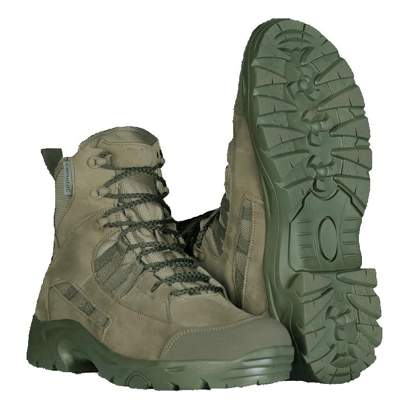 Черевики вироблені з натурального, зносостійкого нубуку, з надійними вставками зі зносостійкої кордури. Додатково черевики покриті гідрофобним просоченням. Носок черевика виготовлений зі шкіри з захисним покриттям, яка посилена армованим термопластом. Підкладка Winterfrost 800, це якісна, дихаюча, мембранна тканина що добре зберігає тепло, розподіляє вологу на велику ділянку та швидко випаровує її, запобігаючи утворенню шкідливих бактерій, та неприємного запаху. Підошва вироблена з термопластичної гуми. Пластичний і зносостійкий матеріал, прекрасно справляється з високим навантаженням, добре переносить високі й низькі температури, стійкий до впливу хімічних речовин. Кріпиться до черевиків вакуумно-клейовим методом, що значно збільшує надійність, та час експлуатації виробу. Черевики достатньо універсальні. Підійдуть як повсякденне взуття, для активного відпочинку, або для військових та охоронних структур. * * * Матеріал: Нубук Матеріал вставок: Кордура Підошва: Термопластична гума Рекомендований температурний режим: від +5°C до -15°C (з термошкарпетками, при активному русі) * * * Увага! Взуття не призначене для тривалого використання під сильними опадами, а для вологої погоди слід використовувати гідрофобний спрей (лак та крем не підійдуть). Не сушити біля обігрівачів. Не прати в пральній машинці, для чищення краще використовувати щітку та пінку або віднести в хімчистку.