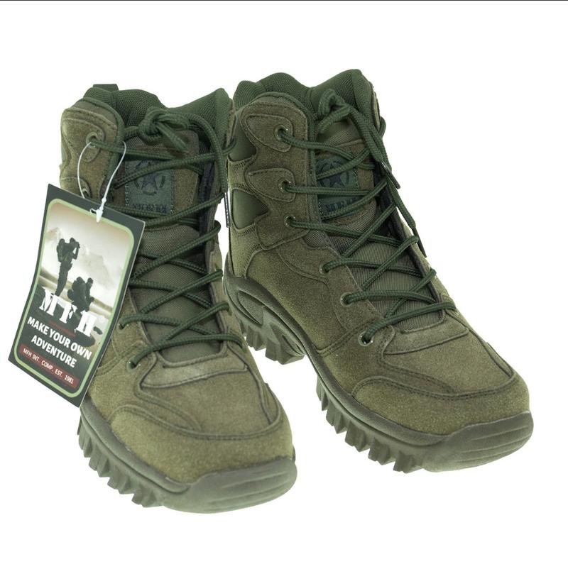 Ботинки с высокими берцами Коммандос оливковые: характеристики Модель: Commando Бренд: MFH (компания Max Fuchs) Сезон: обувь для весенне-осеннего бездорожья Подойдет: военным, охотникам, рыбакам, всем любителям стиля милитари Цвет: армейский оливковый Высота берцев: 12,7 см Материал верха: текстиль – полиэстер Стелька: из пены ЭВА Подошва: резиновая Способ застегивания: шнуровка (по 6 люверсов с каждой стороны) Материал шнурков: полиэстер Особенность: носок и пятка усилены накладками и двойной строчкой Чем хороши армейские берцы Commando Olive Max Fuchs • Легкость, прочность, неприхотливость – одни из главных достоинств текстильной обуви. Верх данной модели сформирован из синтетического материала, созданного на основе полиэфирных волокон. Она весит меньше, чем кожаная обувь, поэтому идеально подходит для длительных прогулок. Устойчива к разрывам, порезам, зацепкам, не будет трескаться при резкой смене температур или расползаться под воздействием ультрафиолета. Натирать кремом и полировать до блеска матерчатую обувь не нужно, в отличие от кожи. Благодаря специальной пропитке полиэстер дает хороший отпор грязи и влаге. Но если на улице льет ливень, перед выходом рекомендуем обработать ботинки водоотталкивающим спреем. Очистить от грязи их помогут мыло, вода и нежесткая щетка. При очень сильных загрязнениях текстильную обувь допустимо стирать. После чистки берцы можно подвесить для просушки за петельки, пришитые к задникам. Полиэстер не подвержен усадке и линьке, поэтому ботинки прослужат несколько сезонов, не утратив свой привлекательный внешний вид. • Хорошая воздухопроницаемость. Синтетика синтетике рознь. Полиэстер выгодно отличается от многих других искусственных материалов тем, что «дышит» и способен быстро отводить лишнюю влагу. А значит, ноги в обуви из полиэстера не будут вечно мокрыми и плохо пахнуть, сводится к минимуму риск грибковых заболеваний. Поскольку сухая стопа меньше будет скользить, меньше и вероятность натирания мозолей. Рекомендуем для здоровья ног выбирать быстросохнущие носки Кулмакс! • Высокие берцы на шнуровке надежно держат голеностоп, при этом он остается подвижным. При прыжках, беге, особенно по пересеченной местности, ботинки Коммандос защитят от опасности растяжения сухожилий, вывихов, ушибов, уберегут от падающих камней, веток. Голенище и язычок уплотнены мягкой подбивкой, не будут сдавливать лодыжку. • Достаточно толстая резиновая подошва с глубоким и разнонаправленным протектором. Она уменьшает скольжение по гладкой и влажной поверхности. Мягко пружинит, гасит силу удара о землю. Расстояние между элементами рисунка подошвы большое, что не позволит скапливаться камешкам, комьям грязи и снегу. После захода с улицы, где слякотно и холодно, в теплое помещение ботинки не будут оставлять за собой грязные лужи. Отметим, что спереди подошва немного наплывает на носок, чем защищает его от истирания. Также благодаря этому легче будет карабкаться, взбираться на возвышенность. высокие ботинки Коммандос Макс Фукс Олива