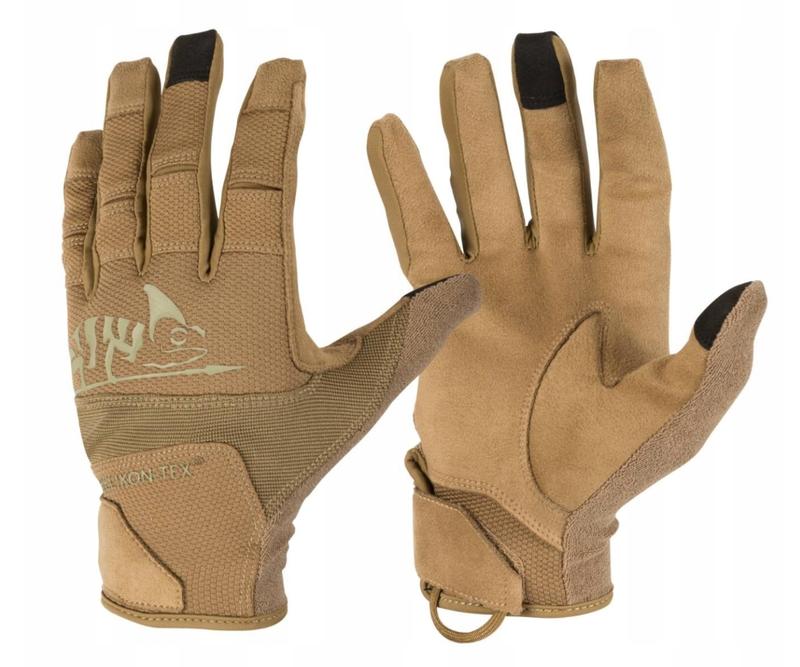 Перчатки Helikon Range Tactical Coyote/Adaptive Green Технические данные: - Дополнительные характеристики : Манжеты застегиваются на липучку. - Цвет/камуфляж : оттенки коричневого - Название оттенка/камуфляжа : Coyote/Adaptive Green - Тип материала : Синтетика - Состав материала : 94% полиэстер, 6% эластан - Утепление : Нет - Поддержка сенсорного экрана : да - Тип/назначение : Тактический - Стать : Мужской Тактические перчатки, идеальные для стрелков, сочетают в себе легкость и воздухопроницаемость. Их трехмерная форма имитирует естественный изгиб руки, а гибкие элементы гарантируют комфорт даже при подготовке к стрельбе. Специальные вырезы по бокам пальцев улучшают комфорт во время продолжительного использования. Пользователь имеет полную чувствительность к прикосновениям, а поверхности захвата из синтетической кожи предотвращают скольжение даже в мокром состоянии. Манжета закрывается на липучку, а дополнительная петля упрощает хранение. Перчатка приталена, но не ограничивает свободу движений. Кроме того, специальная микрофибра на большом пальце позволяет вытирать грязь с защитных очков или вытирать пот с лица. Материалы, используемые в модели Range Tactical, позволяют работать с сенсорными экранами в смартфонах и планшетах, не снимая перчаток (рабочая работа осуществляется большим и средним пальцами). Технические данные - Цвет: Coyote/Adaptive Green - Материал: 94% полиэстер, 6% эластан - Вес: 68 г - Производитель: Геликон-Текс, Польша
