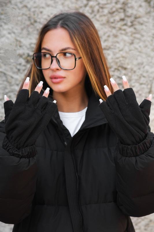 Теплые черные зимние флисовые перчатки без пальцев 1-74 without fix woman