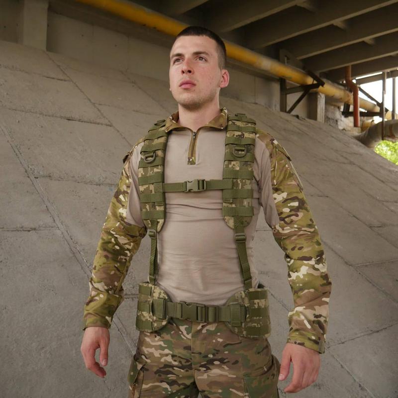 ✅Колір: мультикам , піксель 🟩У пошитті використовується: - Водонепроникна тканина Кордура 500D. - Вся фурнітура 100% Поліамід. ✅Ремінно – плечову систему Kiborg R-1 можна використовувати разом з плитоноскою, поверх військового одягу та верхнього одягу. Можливо використовувати не тільки у військових, тактичних цілях, а також під час польових навчань чи полювання (мисливства). 💰Ціна-2150