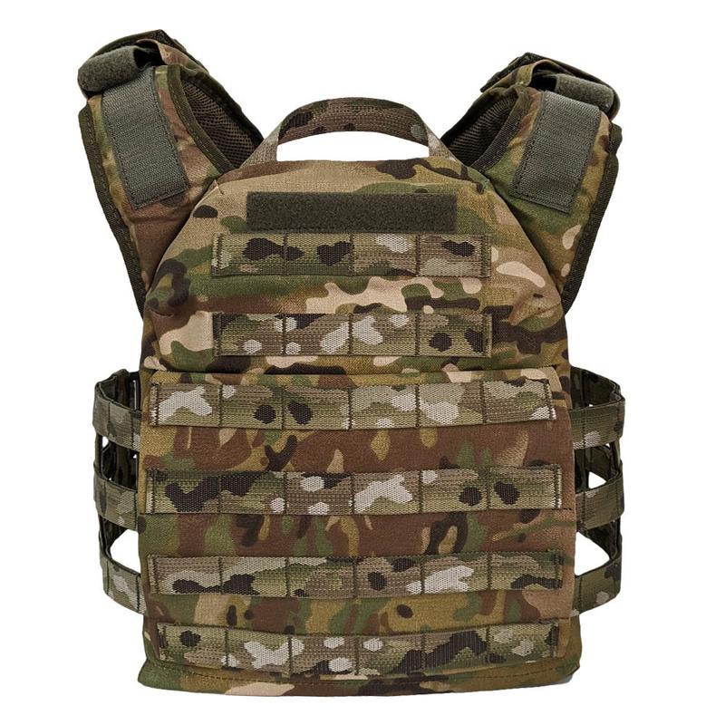Данная модель имеет комплектацию 1-3: защиту переда (1), спины (2), скелетон (3). Удобная плитоноска наружного ношения, изготовленная из 100% полиамида специальной пропитки. Предназначена для защиты жизненно важных органов человека. Может состоять из 5-ти элементов: защита переда (1), спины (2), скелетон (3), защита паха (4), защита боков (камербанд). Элементы 1-2 оснащены карманами для жесткого бронеэлемента и мягкой баллистической защиты. Соединяются между собой плечевыми лямками и наплечниками, которые позволят отрегулировать размер изделия по высоте. Конструкция плечевых лямок с креплениями велкро обеспечивает легкий быстрый сброс. Передняя стенка полностью покрыта ячейками системы MOLLE для удобной и надежной фиксации дополнительного тактического снаряжения. В верхней части текстильная застежка "петли" для крепления таблички идентификатора, шевронов. Внутренняя стенка из тактической сетки и демпферной пенки отлично амортизируется и вентилируется. На спине предусмотрена эвакуационная ручка. Элемент 3 надежно фиксируется к переду и спине с помощью фурнитуры быстрого сброса 2M DUE EMME ROC 80 (к элементу 1) и шнуровке (к элементу 2) . Конструкция скелетона - жесткая. Шнуровкой вы можете отрегулировать размер плитоноски по обхвату грудной клетки. На скелетон крепятся элементы камербанда (5) с мягкой баллистической защитой. Чехол паховой зоны для баллистической защиты можно использовать в качестве универсального подсумки. * Изделие отвечает требованиям ДСТУ 8782:2018. Ячейки системы MOLLE могут быть изготовлены путём лазерной резки или нашиванием текстильных лент. Размер: универсальный (S - XL). Материалы: Cordura 1000D, Cordura 500D, Cordura Hybrid, синтетическая сетка.