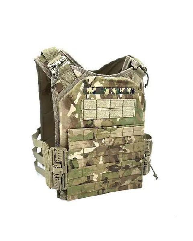 Размер: регулируется Материал: CORDURA 1000D Фастексы: Фурнитура ROC/40/80 (Ацетал) Липучка: VELCRO Внутренняя часть: сетка Air mesh 200 г/м2 Физически вспененный полиэтилен 5мм MOLLE: CORDURA 1000D; Совместимость с плитами - 25×30 см Отсеки для плит с фиксаторами Конструкция: Фронтальная часть имеет панель Velcro для идентификационных патчей Задняя часть жилета регулируется по размеру, оборудована эвакуационной ручкой, а также имеет широкую и плотную резинку, которая не ограничивает движение Изготовленная модель с качественной CORDURA плотностью 1000 ден. Система MOLLE расположена на передней, задней и боковых частях. Изготовлена из той же CORDURA благодаря чему плитоноска полностью камуфлирована, и нет отличия в цвете. зафиксированная. Каркас передней и задней части держит форму благодаря физически вспененного полиэтилена. Это материал высочайшего качества, который не запоминает форму при длительном использовании Размещение застежек ROC/40/80 (Ацетал), усовершенствованное по потребностям быстрой съемки и не мешающее при использовании оружия Внутренняя часть сделана из сетки Air mesh 200 г/м2, которая отводит влагу и обеспечивает циркуляцию воздуха Velcro и все остальные элементы пришиты очень прочно, на промышленных машинках JUKI.