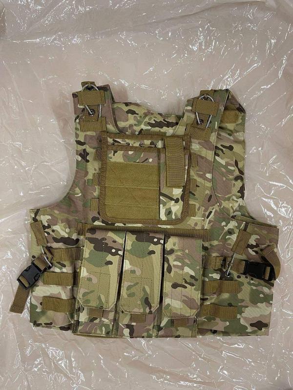 Система швидкого скидання, три закриті підсумки для великих магазинів, центральна сумка-кишенька, один малий підсумок для пістолетних набоїв. На лямках є спеціальні позиції для рації. Підходить під плити розміром 30*25*2,5см. Матеріал: 600D Oxford еластичний водонепроникний Розмір плитоноски: 52х45 см Вага: 1,4 кг