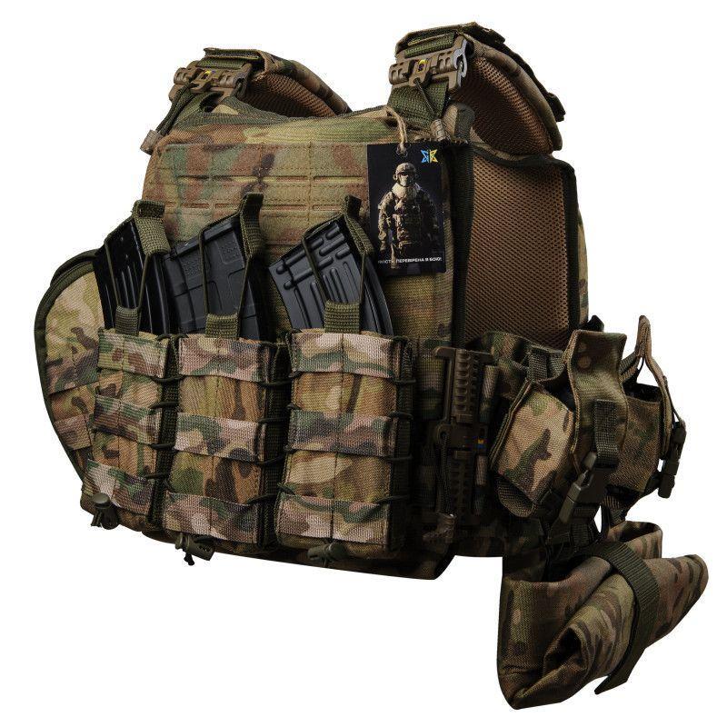Комплектация: плитоноска 1шт. + подсумок АК 3 шт. + посдумок граната 2 шт. + подсумок аптечки 1шт. + подсумок сброса 1шт. Плитоноска выполнена по образцу НАТО Ткань: Oxford 600d Нитка: сверхпрочная Армированная нить (Польша) Подходит размер плит 25*30 не промокает встроен демпфер стропы M.O.L.L.E. по всей поверхности внутренние карманы для бронепанелей ручка для эвакуации на спине регулируется по обхвату и высоте Можно дополнительно доукомплектовать: подсумок 2-ой под магазин +300 грн подсумок под магазин +350 грн подсумок под гранату +250 грн подсумок под аптечку +600 грн (непромокаемая молния) подсумок для сброса магазинов +100 грн Вес: 650 г