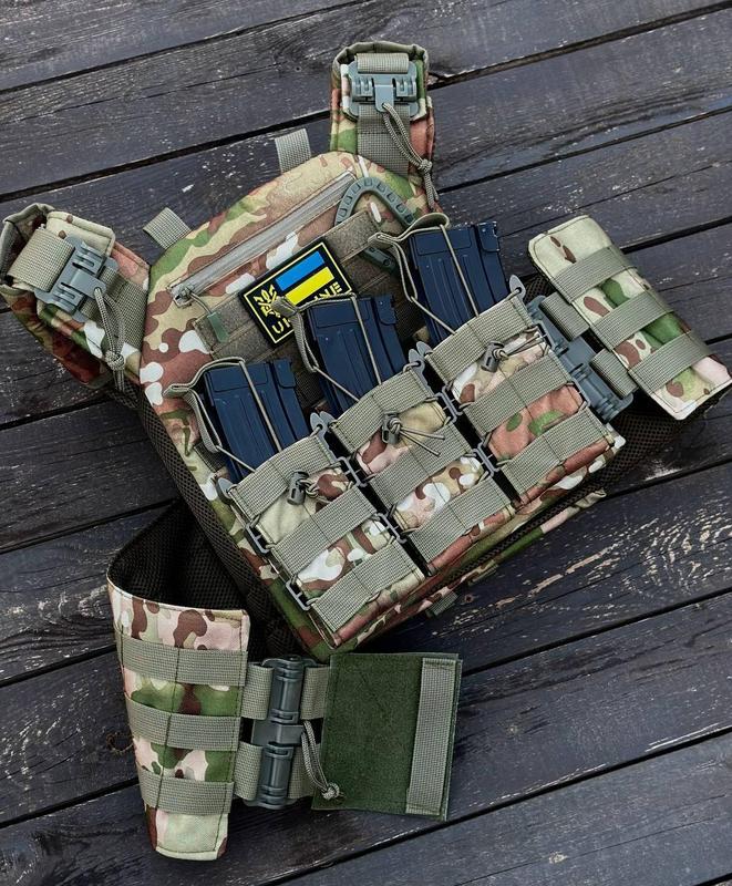 ## Плитоноска быстрого сброса + 3 Подсумока Мультикам для боевых действий DM-11 Обращаем Ваше внимание, что фурнитура может отличаться по цвету, в зависимости от партии поставки. Напашник в комплект не входит В комплекте плитоноска 1 шт подсумок с пластиковыми боками для АК / AR 3 шт боковые карманы под мягкие баллистические пакеты 15*30 см Качественная плитоноска по стандарту НАТО оснащена боковой и верхней системой быстрого сброса, под плиту 25×30 см. - Размер плитоноски универсален, регулируется на плечах и по объему от М до XXL. - С середины прошита 3D сеткой и смягчающей подкладкой, что служит дополнительным. демпфером. - Позади оснащена эвакуационной ручкой. - По верху прошита системой Molle, позволяющей крепить любые подсумоки и другое дополнительное снаряжение. - По переду вшита дополнительная карман на молнии для личных нужд . - Бронеплиты вставляются снизу и фиксируются широкой системой липучек, что не даст вашим плитам выпасть или протереть крепление. Изготовлена из прочной, водонепроницаемой ткани Кордура 900D. Для пошива используется полиамид. стропа. Для ее изготовления используется стойкий к износу, суперпрочный, высококачественный полиамид. Обладает отличными свойствами: высокий уровень прочности, надежный, сможет выдержать большие нагрузки, устойчив к негативному воздействию ультрафиолета, влаги, высоких/низких температур, долговечен. Соответствует требованиям отечественных стандартов качества. Плитоноска прошита армированными нитями, что повышает срок службы изделия. Успейте заказать, количество штук по акции ограничено! Остерегайтесь подделок и низкокачественного товара, его сейчас очень много представлено под видом oригинaлa! Мы предлагаем высочайшее добротное качество товара на рынке Украины, который выполняет свою функцию и от которого вы будете получать только приятные эмоции. Почему покупают именно у нас? Отзывы и рекомендации реальных клиентов Наш магазин имеет многочисленные положительные отзывы от довольных клиентов. Вы можете ознакомиться с их опытом и рекомендациями в описании ниже и на нашем сайте, что поможет вам сделать обоснованный выбор. Прозрачность и честность Мы ведем открытую и честную политику в отношениях с клиентами и всегда идем навстречу. Все характеристики товаров, условия гарантии и обмена четко указаны на нашем сайте, что позволяет избежать недоразумений и обеспечивает доверие клиентов. Легкая система возврата товаров Мы понимаем, что иногда товар может не подойти Вам по тем или иным причинам. Поэтому мы предлагаем гибкую и прозрачную систему возврата товаров, что обеспечивает вам спокойствие и уверенность в вашей покупке. Высокий уровень обслуживания клиентов, 10 лет опыта Наши специалисты всегда готовы предоставить профессиональную консультацию и помощь в выборе товара. Мы ценим каждого клиента и стремимся сделать процесс покупки максимально комфортным и приятным. Быстрая доставка и удобные условия оплаты Мы предлагаем быструю и надежную доставку по всей стране, а также разнообразные способы оплаты, включая наличный и безналичный расчет. Наши клиенты могут выбрать наиболее удобный для себя способ получения товара. ✅ Весь товар проверяется на наличие брака перед отправкой ✅ Отзывы наших клиентов Поторопись, товара по акции осталось всего 3шт! ✅ С заботой о каждом клиенте ✅ 