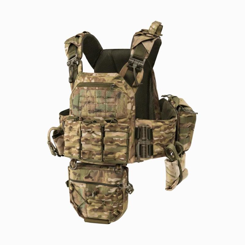 Комплектація: 3 підсумки під АК 1 підсумок для скидання магазинів 1 напашник 2 підсумка під гранату 1 підсумок під аптечку 1 підсумок під турнікет Сумісний із плитами розміром 250x300 мм Бокові кармани під балістичні пакети 250*150 мм виготовлена відповідно до стандартів НАТО і США з використанням матеріалу Cordura 1000D, що забезпечує високу міцність. Вона оснащена системою регулювання по поясу і плечах, а також має швидку систему скидання Характеристики: Матеріал: Cordura 1000D Фурнітура для швидкого скидання виробництва 3М 3D вентиляція для підвищення комфорту Текстильні застібки виробництва Velcro/Alfatex Регулювання за висотою для розмірів від S до XXXL Регулювання камербанду за об'ємом для розмірів від S до XXL Еластична вставка на камербанді Передня знімна MOLLE-панель Передня частина має кишеню для особистих речей М'які панелі для кріплення ідентифікаторів та пачів Сумісний із плитами розміром 250x300 мм Бокові кармани під балістичні пакети 250*150 мм