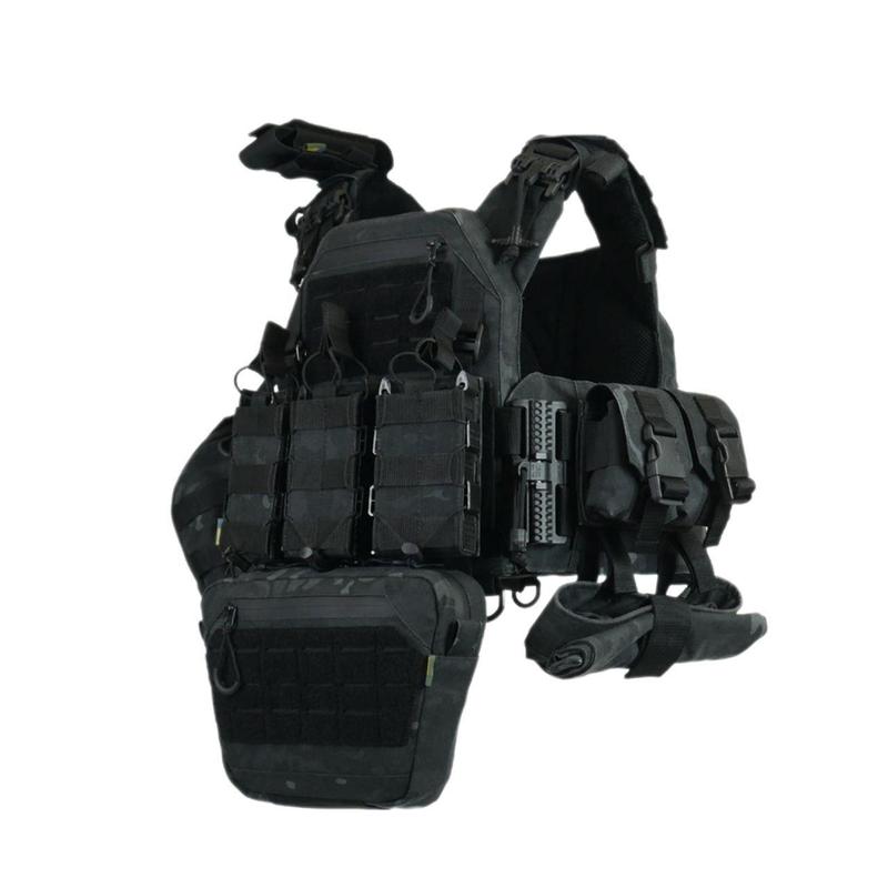 В комплекті - Плитоноска швидкого скидання CEN.2. 1 шт -Підсумок під магазин з пластиковими боками 3 шт -Напашник XL з карманом під балістичний пакет 1 шт - Тактичний підсумок під скидання рулонний 26x34 1 шт -Підсумок під турнікет відкритого типу з кріпленнями для тактичних ножиць та маркера;1 шт - Підсумок-аптечка (швидкий скид) 1 шт -підсумок під 2 гранати 1 шт Плитоноска оснащена з’ємною передньою Molle панеллю яка кріпиться до основи на Velcro та додатково двома карабінами Woojin. На ній зручно розміщуються 3 підсумки під 1 або два магазини, або інше Molle-сумісне спорядження. Цю панель можна швидко замінити на іншу із закрікленим на неї заздалегідь набором потрібних підсумків. Матеріал Cordura Nylon 6.6 1000D з NIR-просоченням Плити 25*30 см Бокові кармани під балістичні пакети 13,5*30,5 см. Характеристика плитоноски Матеріал: Виготовлена з Cordura Nylon 6.6 1000D з NIR-просоченням, що забезпечує виріб меншу помітність у приладах нічного бачення. Тканина має подвійне поліуретанове покриття для захисту від вологи та мастильних матеріалів, не підтримує горіння, не стирається, не вигорає на сонці. Сумісність: Підходить для бронеплит розміром 25*30 см зі скошеними верхніми кутами і товщиною до 30 мм (металеві або керамічні). Бокові кишені: Оснащена кишенями під балістичні пакети 13,5*30,5 см. Система Molle: Плитоноска має велкро панель з Luser Cut Molle на верхній частині, а також чотири ряди строп Molle на фронтальній частині та три ряди строп Molle на камербандах. Елементи захисту: Підходить для установки балістичних пакетів першого або другого класу від компанії Militex. Швидке скидання: Має подвійний механізм швидкого скидання в зоні плечей та камербандів для швидкого зняття плитоноски. Комфорт: Має ергономічні плечові лямки з м’яким демпфером та 3D-сіткою для більшого комфорту і правильного розподілу навантаження. Додаткові функції: Регульована система по довжині та об'єму. Д-кільця спереду та ззаду для кріплення додаткового спорядження. Велкро панель для розміщення патчів, Molle-спорядження та невеликого адміністративного відділення. Демпферні вставки: Внутрішня частина плитоноски має демпферні вставки обшиті 3D-сіткою для амортизації та правильної циркуляції повітря. Камербанди: З'ємні, з м'якими демпферами обшитими 3D-сіткою та кишенями під балістичні пакети 13,5*30,5 см Евакуаційна ручка: Ручка для евакуації, яка фіксується до спинки велкро- панелями. Ця плитоноска має високий рівень функціональності та надійності для захисту користувача в різних умовах.