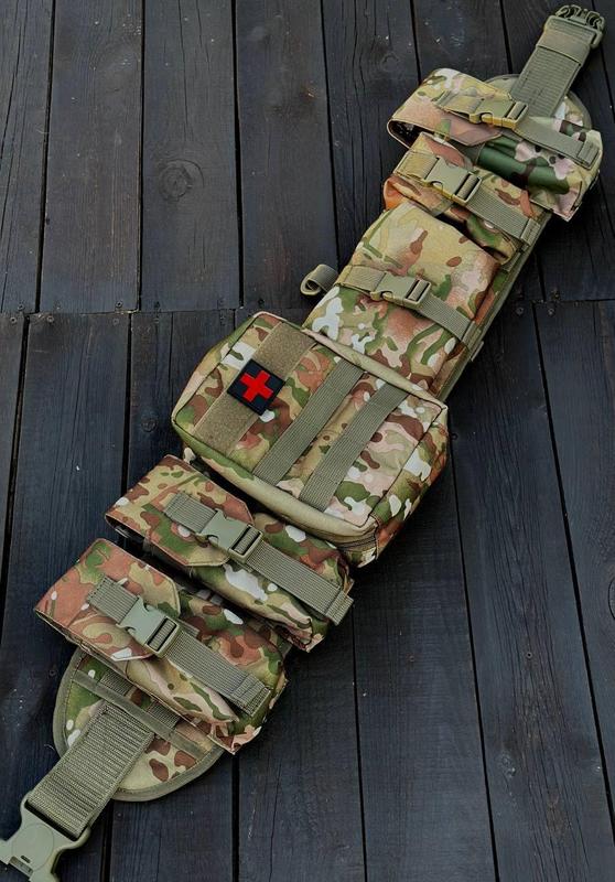 Комплект новий РПС з ремнем на фастексі та 6 підсумків До комплекту входять: -РПС та ременем на фастексі з системою "Lock"; -підсумок під аптечку; -сумка для скиду; -підгранатник; -закритий двойний підсумок під магазини, 3 шт. Довжина ременя регулюється від 125 см до 95 см, ширина 5 см. Розмір підкладки 90х15 см РПС оснащений кріпленнями для подальшого використання плечиків та ремнем на фастексі з системою "Lock". Ремінь змінний. В середину вшита помякшуюча підкладка що слугує додатковим демфером. РПС оснащений дихаючою 3D сіткою з внутрішньої сторони, що робить його більш комфортнішим у використанні. Зовнішня сторона оснащення системою моллі з міцної та надійної поліамідної стропи, для кріплення підсумків та іншого додаткового спорядження. Для пошиву використовується щільна, водовідштовхувальна тканина Кордура 900D. Все прошито армованими нитками, що підвищує термін служби виробу. Колір: мультикам, олива, піксель, чорний.