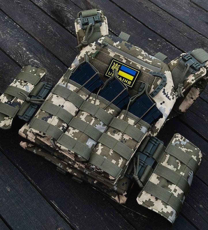 ## Плитоноска быстрого сброса+ Тройной Подсумок под магазины АК для баллистических пакетов GL-55 Обращаем Ваше внимание, что фурнитура может отличаться по цвету, в зависимости от партии поставки. В комплекте плитоноска 1 шт Тройный подсумок под магазины АК 1 шт < br />боковые карманы под мягкие баллистические пакеты 15*30 см Качественная плитоноска по стандарту НАТО оснащена боковой и верхней системой быстрого сброса, под плиту 25×30 см. - Размер плитоноски универсален, регулируется на плечах и по объему от М до XXL. - С середины прошита 3D сеткой и смягчающей подкладкой, которая служит дополнительным демпфером. - Сзади оснащена эвукационной ручкой. - По верху прошита системой Molle, позволяющей крепить любые подсумоки и другое дополнительное снаряжение. - По переду вшитая дополнительная карман на молнии для личных нужд. - Бронеплиты вставляются снизу и фиксируются широкой системой липучек, которая не даст вашим плитам выпасть или протереть крепление. Изготовлена из прочной, водонепроницаемой ткани Кордура 900D. Для пошива используется полиамидная стропа. Для ее изготовления используется устойчивый к износа, суперпрочный, высококачественный полиамид. Обладает отличными свойствами: высокий уровень прочности, надежный, сможет выдержать большие нагрузки, устойчив к негативному воздействию ультрафиолета, влаги, высоких/низких температур, долговечен. Соответствует требованиям отечественных стандартов качества. Плитоноска прошита армированными нитями, что повышает срок службы изделия. Успейте заказать, количество штук по акции ограничено! Остерегайтесь подделок и низкокачественного товара, его сейчас очень много представлено под видом oригинaлa! Мы предлагаем высочайшее добротное качество товара на рынке Украины, который выполняет свою функцию и от которого вы будете получать только приятные эмоции. Почему покупают именно у нас? Отзывы и рекомендации реальных клиентов Наш магазин имеет многочисленные положительные отзывы от довольных клиентов. Вы можете ознакомиться с их опытом и рекомендациями в описании ниже и на нашем сайте, что поможет вам сделать обоснованный выбор. Прозрачность и честность Мы ведем открытую и честную политику в отношениях с клиентами и всегда идем навстречу. Все характеристики товаров, условия гарантии и обмена четко указаны на нашем сайте, что позволяет избежать недоразумений и обеспечивает доверие клиентов. Легкая система возврата товаров Мы понимаем, что иногда товар может не подойти Вам по тем или иным причинам. Поэтому мы предлагаем гибкую и прозрачную систему возврата товаров, что обеспечивает вам спокойствие и уверенность в вашей покупке. Высокий уровень обслуживания клиентов, 10 лет опыта Наши специалисты всегда готовы предоставить профессиональную консультацию и помощь в выборе товара. Мы ценим каждого клиента и стремимся сделать процесс покупки максимально комфортным и приятным. Быстрая доставка и удобные условия оплаты Мы предлагаем быструю и надежную доставку по всей стране, а также разнообразные способы оплаты, включая наличный и безналичный расчет. Наши клиенты могут выбрать наиболее удобный для себя способ получения товара. ✅ Весь товар проверяется на наличие брака перед отправкой ✅ Отзывы наших клиентов Поторопись, товара по акции осталось всего 3шт! ✅ С заботой о каждом клиенте ✅ ДОС