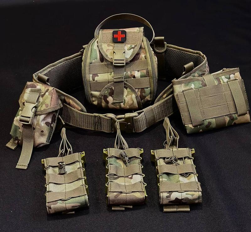 Комплект РПС з ремнем на фастексі та 6 підсумків До комплекту входять: -РПС та ременем на фастексі з системою "Lock"; -підсумок під аптечку швидкого скидання; -сумка для скиду; -підгранатник; -каркасний підсумок під магазини, 3 шт. Довжина ременя регулюється від 125 см до 95 см, ширина 5 см. Розмір підкладки 90*10 см РПС оснащений кріпленнями для подальшого використання плечиків та ремнем з надійною, металевою застібкою. Ремінь змінний. В середину вшита помякшуюча підкладка що слугує додатковим демфером. РПС оснащений дихаючою 3D сіткою з внутрішньої сторони, що робить його більш комфортнішим у використанні. Зовнішня сторона оснащення системою моллі з міцної та надійної поліамідної стропи, для кріплення підсумків та іншого додаткового спорядження. Все прошито армованими нитками, що підвищує термін служби виробу.