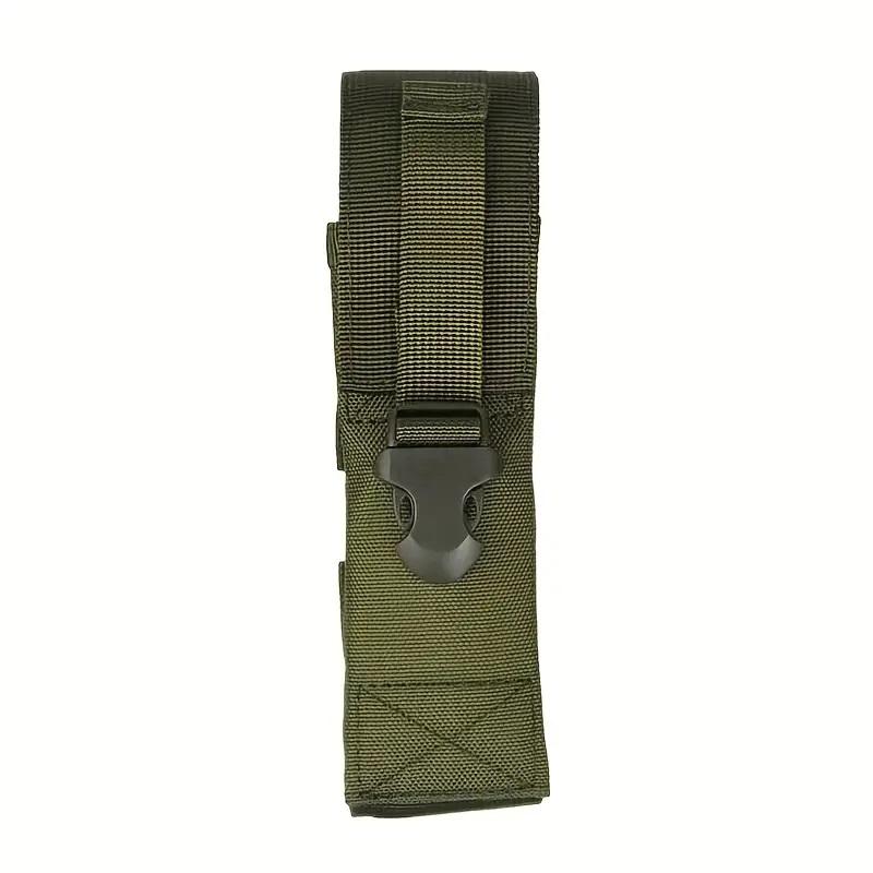 Тактический итог для фонарика длиной от 15 до 18 см. Подсумок закрытого типа, с застежкой, обеспечивающий защиту фонарика от грязи и грязи. Изготовлен из износостойкого нейлона (материал Кордура) с военным окрасом (масло). Подсумок компактный, легкий, совместимый с военным снаряжением (крепление MOLLE), рюкзаками и ремнями. Оптимальное решение для военных. Подсумок имеет размеры: длина 20 см, ширина 5,5 см, толщина 2 см.