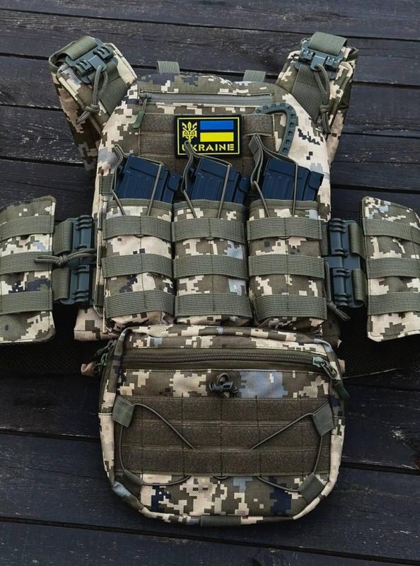 Внимание важна информация Обращаем Ваше внимание, что фурнитура может отличаться по цвету, в зависимости от партии поставки. В комплекте плитоноска 1 шт Тройной подсумок под магазины АК 1 шт Напашник 1 шт боковые карманы под мягкие баллистические пакеты 15*30 см Качественная плитоноска по стандарту НАТО оснащена боковой и верхней системой быстрого сброса, под плиту 25×30 см. - Размер плитоноски универсальный, регулируется на плечах и по объему от М до XXL. - С середины прошита 3D сеткой и смягчающей подкладкой, что служит дополнительным демпфером. - Сзади оснащена эвукационной ручкой. - По верху прошита системой Molle, позволяющей крепить любые подсумки и другое дополнительное снаряжение. - По переду вшит дополнительный карман на молнии для личных нужд. - Бронеплиты вставляются снизу и фиксируются широкой системой липучек, что не даст вашим плитам выпасть или протереть крепления. Изготовлена из прочной, водонепроницаемой ткани Кордура 900D. Для пошива используется полиамидная стропа. Для ее изготовления используется устойчивый к износу, супер прочный, высококачественный полиамид. Обладает отличными свойствами: высокий уровень прочности, надежная, сможет выдержать большие нагрузки, устойчива к негативному воздействию ультрафиолета, влаги, высоких/низких температур, долговечна. Соответствует требованиям отечественных стандартов качества. Плитоноска прошита армированными нитями, что повышает срок службы изделия.