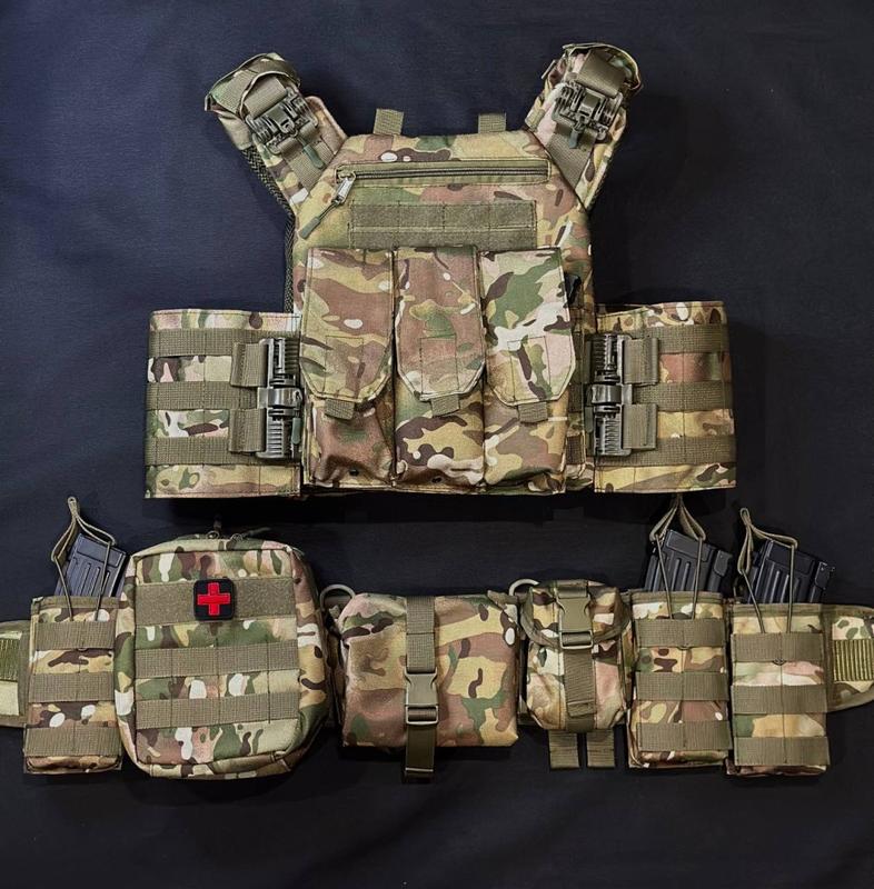 Обращаем Ваше внимание, что фурнитура может отличаться, в зависимости от партии поставки. В комплекті плитоноска 1 шт Тройный закрытый подсумка под магазины АК 1 шт Подсумок ординарный для АК 3 шт Подсумок под гранату 1 шт Подсумок для сброса 1 шт РПС Кобра без плечиков 1 шт Аптечка 1 шт Качественная плитоноска по стандарту НАТО оснащена боковой и верхней системой быстрого сброса, под плиту 25×30 см. боковые карманы под мягкие баллистические пакеты 15*30 см - Размер плитоноски универсальный, регулируется на плечах и по объему от М до XXL. - С середины прошита 3D сеткой и смягчающей подкладкой, что служит дополнительным демпфером. - Сзади оснащена эвукационной ручкой. - По верху прошита системой Molle, позволяющей крепить любые подсумки и другое дополнительное снаряжение. - По переду вшит дополнительный карман на молнии для личных нужд. - Бронеплиты вставляются снизу и фиксируются широкой системой липучек, что не позволит вашим плитам выпасть или протереть крепления. Изготовлена из прочной, водонепроницаемой ткани кордура. Для пошива используется полиамидная стропа. Для ее изготовления используется устойчивый к износу, супер прочный, высококачественный полиамид. Обладает отличными свойствами: высокий уровень прочности, надежная, сможет выдержать большие нагрузки, устойчива к негативному воздействию ультрафиолета, влаги, высоких/низких температур, долговечна. Соответствует требованиям отечественных стандартов качества. Плитоноска прошита армированными нитями, что повышает срок службы изделия.