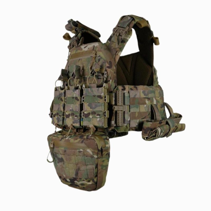 Внимание важна информация Отправка 4-5 рабочих дней Бронеплити не входять в комплект В комплекті - Плитоноска быстрого сброса CEN.2. 1 шт -Подсумок под магазин с пластиковыми боками 3 шт -Напашитель XL с карманом под баллистический пакет 1 шт - Тактический итог под сброс рулонный 26x34 1 шт -Подсумок под турникет открытого типа с креплениями для тактических ножниц и маркера;1 шт - Подсумок-аптечка (быстрый скид) 1 шт -подсумок под 2 гранаты 1 шт Плитоноска оснащена съемной передней Molle панелью которая крепится к основе на Velcro и дополнительно двумя карабинами Woojin. На ней удобно размещаются 3 подсумка под 1 или два магазина, или другое Molle-совместимое снаряжение. Эту панель можно быстро заменить на другую с закрикенным на нее заранее набором нужных подсумков. Материал Cordura Nylon 6.6 1000D с NIR- пропиткой Плиты 25*30 см Боковые карманы под баллистические пакеты 13,5*30,5 см. Характеристика плитоноски Материал: Изготовлена из Cordura Nylon 6.6 1000D с NIR-пропиткой, что обеспечивает изделие менее заметное в приборах ночного видения. Ткань имеет двойное полиуретановое покрытие для защиты от влаги и смазочных материалов, не поддерживает горение, не стирается, не выгорает на солнце. Совместимость: Подходит для бронеплит размером 25*30 см со скошенными верхними углами и толщиной до 30 мм (металлические или керамические). Боковые карманы: Оснащен карманами под баллистические пакеты 13,5*30,5 см. Система Molle: Плитоноска имеет велкро панель с Luser Cut Molle на верхней части, а также четыре ряда строп Molle на фронтальной части и три ряда строп Molle на камерах. Элементы защиты: Подходит для установки баллистических пакетов первого или второго класса от компании Militex. Быстрый сброс: имеет двойной механизм быстрого сброса в области плеч и камербандов для быстрого снятия плитоноски. Комфорт: имеет эргономичные плечевые лямки с мягким демпфером и 3D-сеткой для большего комфорта и правильного распределения нагрузки. Дополнительные функции: Регулируемая система по длине и объему. Д-кольца спереди и сзади для крепления дополнительного снаряжения. Велкро панель для размещения патчей, Molle-составление и небольшого административного отделения. Демпферные вставки: Внутренняя часть плитоноски имеет демпферные вставки обшиты 3D-сеткой для амортизации и правильной циркуляции воздуха. Камербанды: Съемные, с мягкими демпферами обшитыми 3D-сеткой и карманами под баллистические пакеты 13,5*30,5 см Эвакуационная ручка: Ручка для эвакуации, которая фиксируется к спинке велкро-панелями. Данная плитоноска имеет высокий уровень функциональности и надежности для защиты пользователя в различных условиях.