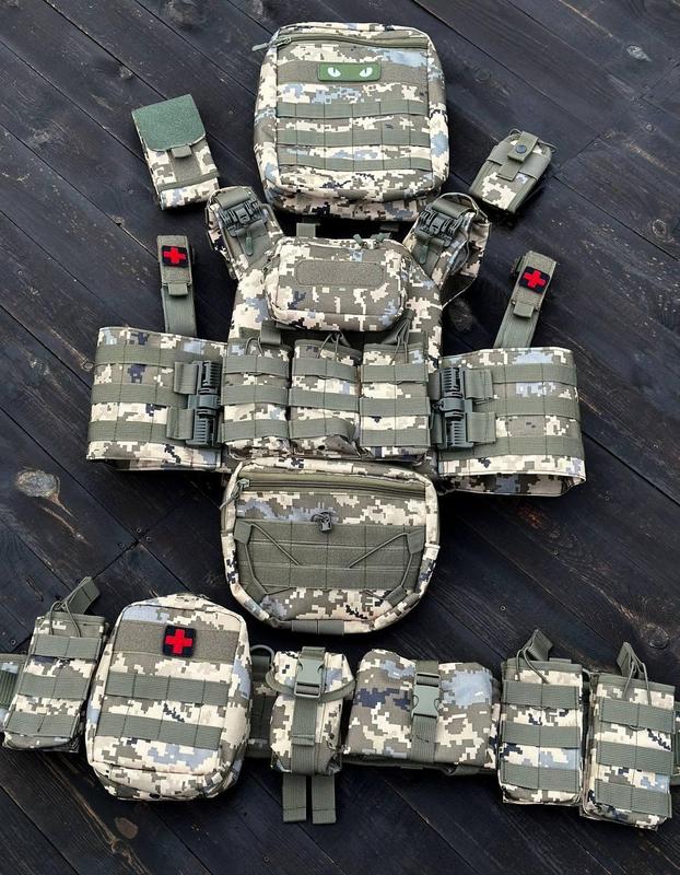 ## Комплект Плитоноска быстрого сброса с боковыми карманами + напашник + рюкзак и 12 Подсумоков - войс VE-33 Шевроны в комплект не входят! В комплекте плитоноска 1 шт Тройный подсумок для АК 1 шт Рюкзак 1 шт подсумок для телефона 1 шт< br />подсумок для рации 1 шт Сумка горизонтальная для плитоноски 1 шт подсумок для турникета 2 шт подсумок для магазинов АК 3 шт РПС Кобра без плечиков 1 шт Аптечка 1 шт подсумок для гранаты 1 шт подсумок для сброса магазинов 1 шт боковые карманы под мягкие баллистические пакеты 15*30 см Качественная плитоноска по стандарту НАТО оснащена боковой и верхней системой быстрого сброса, под плиту 25×30 см. - Размер плитоноски универсален, регулируется на плечах и по объему от М до XXL. - С середины прошитая 3D сеткой и смягчающей подкладкой, служащая дополнительным демпфером. - Позади оснащена эвукационной ручкой. - По верху прошита система Molle, позволяющая крепить любой -какие подсумоки и другое дополнительное снаряжение. - По переду вшитый дополнительный карман на молнии для личных нужд. - Бронеплиты вставляются снизу и фиксируются широкой системой липучек, что не даст вашим плитам выпасть или протереть крепеж. /> Изготовленная из прочной, водонепроницаемой ткани кордура. Для пошива используется полиамидная стропа. Для ее изготовления используется стойкий к износу, суперпрочный, высококачественный полиамид. Обладает отличными свойствами: высокий уровень прочности, надежный, сможет выдержать большие нагрузки, устойчив к негативному воздействию ультрафиолета, влаги, высоких/низких температур, долговечен. Соответствует требованиям отечественных стандартов качества. Плитоноска прошита армированными нитями, что повышает срок службы изделия. Компактный и легкий рюкзак является незаменимым элементом снаряжения профессиональных военных. Выполненный полностью из прочного, водонепроницаемого материала оксфорд 600d. Основные характеристики: • размер (см): 25/30/10 • крепеж на системе MOLLE • имеет в середине 2 объемных кармана • может использоваться как рюкзак для гидросистемы. • имеет велкро панель для креплений шевронов и патчей. • закрывается на молнию. • дополнительные стропы MOLLE спереди. • усиленные швы • армированные нити Успейте заказать, количество штук по акции ограничено! Остерегайтесь подделок и низкокачественного товара, его сейчас очень много представлено под видом oригинaлa! Мы предлагаем высочайшее добротное качество товара на рынке Украины, который выполняет свою функцию и от которого вы будете получать только приятные эмоции. Почему покупают именно у нас? Отзывы и рекомендации реальных клиентов Наш магазин имеет многочисленные положительные отзывы от довольных клиентов. Вы можете ознакомиться с их опытом и рекомендациями в описании ниже и на нашем сайте, что поможет вам сделать обоснованный выбор. Прозрачность и честность Мы ведем открытую и честную политику в отношениях с клиентами и всегда идем навстречу. Все характеристики товаров, условия гарантии и обмена четко указаны на нашем сайте, что позволяет избежать недоразумений и обеспечивает доверие клиентов. Легкая система возврата товаров Мы понимаем, что иногда товар может не подойти Вам по тем или иным причинам. Поэтому мы предлагаем гибкую и прозрачную систему возврата товаров, что обеспечивает вам спокойствие и уверенность в вашей покупке. Высоки