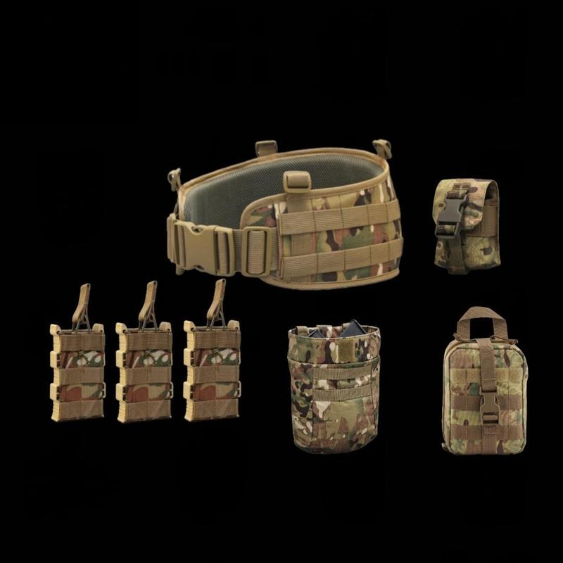 ## Тактический пояс РПС + 6 Подсумоков Мультикам для хранения магазинов гранат и аптечки VE-33 *Плечевые крепления можно приобрести отдельно, не входят в комплект. Можно комплектовать с другими аксессуарами: напашником, подсумоком для рации, для турникета, для РПК, нагрудным подсумоком. Также возможно, например, заказать только РПС без подсумоков. В комплекте Тактический пояс РПС 1 шт подсумок с пластиковыми боками для магазинов АК/AR. 3 шт Аптечка быстрого сброса 1 шт подсумок под гранату 1 шт Сумка для сброса магазинов 1 шт РПС И для выбора есть два размера: стандартный и большой. Стандартный 80-140 см Molli 16 шт Большой 96-156 см Molli 20 шт /> жесткая конструкция сохранения формы, а анатомическая форма идеально подстраивается под ваше тело. Изготовлен из сверхпрочной ткани Cordura, комбинирует прочность и комфорт. Внутри находится пластиковая пластина для жесткости и слой Изолона для максимального удобства. Дополнительной особенностью является 3D сетка для вентиляции, обеспечивая комфорт даже в условиях большой физической нагрузки. Фурнитура, (фастекс – 50 мм, пряжки, лента – 25 мм), удобство и надежность. С размером можно легко справиться, ведь ремни можно растянуть на дополнительные +50 см. Удобный жесткий со вшитым пластиком результат для магазинов от АК/AR. Надежный фиксатор не позволяет магазину вылетать из ячейки во время активных действий и прыжков. Вынуть магазин рукой для перезарядки достаточно просто. Подходят для калибров: 5.45, 7.62 и 5.56. Назначение: магазины АК / AR Материал: Oxford Вместимость: 1 магазин система MOLLE Размеры: 7,5 см - ширина, 13 см - высота, 2,5 см - толщина Особенности подсумока : продукт качественный и достаточно легкий надежно крепится к бронежилету, рюкзаку или разгрузке надежные эластичные фиксаторы для магазинов подсумок для обломочной гранаты – это функциональный и надежный элемент снаряжения бойца. Эта модель предназначена для переноски и хранения одной гранаты или подобных по размеру предметов. Изготовлена из высококачественного материала Cordura 500-800D – сверхпрочной ткани, устойчивой к истиранию и высоким нагрузкам. подсумок оборудован крышкой-клапаном и закрывается фастексом, что обеспечивает быстрый доступ к гранате. Особая регулировка застежки клапана позволяет адаптировать подсумок под содержание разной длины. Эластичные резинки по бокам обеспечивают дополнительную фиксацию. Система крепления MOLLE позволит Вам закрепить результат на все современные модульные и разгрузочные системы. Наш результат для обломочной гранаты выдержит испытание строгими полевыми условиями и станет незаменимым помощником на поле боя. < Габаритные размеры - 12*7,5*7,5 см Сумка сброса магазинов – это удобный и функциональный аксессуар, который предназначен для сброса магазинов во время экстренной перезарядки оружия. < br />Изготовлена из Oxford – качественного и износостойкого материала, что обеспечит защиту от механических повреждений и длительный срок эксплуатации. Горловина снабжена системой быстрой стяжки, позволяющей при необходимости моментально закрыть сумку. Такая конструкция надежно защищает магазины и другое снаряжение от выпадения. Вход в рабочий отсек армированный по кругу пластиковой вставкой, чтобы сброс магазинов занимал минимум времени. Снизу предусмотрены отверстия, обработанные люверсами, которые выполняют роль дренажа и о