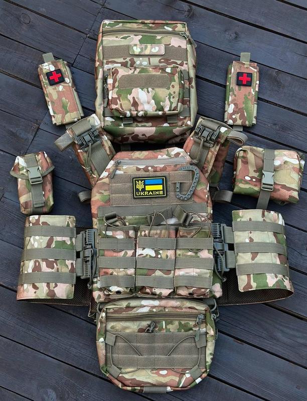 ## Плитоноска GEN.7 быстрого сброса+ 7 Подсумоков и Рюкзак Мультикам для боевых операций VE-33 Обращаем Ваше внимание, что фурнитура может отличаться по цвету, в зависимости от партии поставки. Шеврон в комплект не входит Плитоноска с системой быстрого сброса 1 шт тройной подсумок под магазины 1 шт рюкзак 1 шт утилитарный подсумок 1 шт подсумок сумка для сброса 1 шт подсумок под гранату 1 шт подсумок под турникет,2 шт напашник с карманом под баллистический пакет 1 шт боковые карманы под мягкие баллистические пакеты 15*30 см Качественная плитоноска по стандарту НАТО оснащена боковой и верхней системой быстрого сброса, под плиту 25×30 см. - Размер плитоноски универсален, регулируется на плечах и по объему от М до XXL. - С середины прошита 3D сеткой и смягчающей подкладкой, что служит дополнительным. демпфером. - Позади оснащена эвакуационной ручкой. - По верху прошита системой Molle, позволяющей крепить любые подсумоки и другое дополнительное снаряжение. - По переду вшита дополнительная карман на молнии для личных нужд . - Бронеплиты вставляются снизу и фиксируются широкой системой липучек, что не даст вашим плитам выпасть или протереть крепление. Изготовлена из прочной, водонепроницаемой ткани Кордура 900D. Для пошива используется полиамид. стропа. Для ее изготовления используется стойкий к износу, суперпрочный, высококачественный полиамид. Обладает отличными свойствами: высокий уровень прочности, надежный, сможет выдержать большие нагрузки, устойчив к негативному воздействию ультрафиолета, влаги, высоких/низких температур, долговечен. Соответствует требованиям отечественных стандартов качества. Плитоноска прошита армированными нитями, что повышает срок службы изделия. Успейте заказать, количество штук по акции ограничено! Остерегайтесь подделок и низкокачественного товара, его сейчас очень много представлено под видом oригинaлa! Мы предлагаем высочайшее добротное качество товара на рынке Украины, который выполняет свою функцию и от которого вы будете получать только приятные эмоции. Почему покупают именно у нас? Отзывы и рекомендации реальных клиентов Наш магазин имеет многочисленные положительные отзывы от довольных клиентов. Вы можете ознакомиться с их опытом и рекомендациями в описании ниже и на нашем сайте, что поможет вам сделать обоснованный выбор. Прозрачность и честность Мы ведем открытую и честную политику в отношениях с клиентами и всегда идем навстречу. Все характеристики товаров, условия гарантии и обмена четко указаны на нашем сайте, что позволяет избежать недоразумений и обеспечивает доверие клиентов. Легкая система возврата товаров Мы понимаем, что иногда товар может не подойти Вам по тем или иным причинам. Поэтому мы предлагаем гибкую и прозрачную систему возврата товаров, что обеспечивает вам спокойствие и уверенность в вашей покупке. Высокий уровень обслуживания клиентов, 10 лет опыта Наши специалисты всегда готовы предоставить профессиональную консультацию и помощь в выборе товара. Мы ценим каждого клиента и стремимся сделать процесс покупки максимально комфортным и приятным. Быстрая доставка и удобные условия оплаты Мы предлагаем быструю и надежную доставку по всей стране, а также разнообразные способы оплаты, включая наличный и безналичный расчет. Наши клиенты могут выбрать наиболее удобный для себя спос
