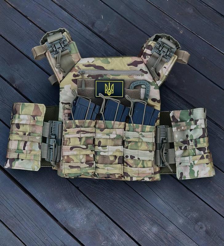 ## Комплект плитоноска GEN.8 быстрого сброса и тройной результат для военных хранения снаряжения DR-11 Внимание важная информация шевроны в комплект не входят! В комплект входят: -поитоноска; -тройной итог под магазины; Под плиту 25× 30 см Имеет 4х точечную систему быстрого сброса боковых карманов под баллистический пакет 15×30см -Плитоноска регулируется на плечах и по объему. -Внутренняя часть оснащена 3D сеткой, что обеспечивает амортизацию и правильную циркуляцию воздуха. - Плечевые лямки усилены дополнительным демпфером. - Крепление для трубки гидратора. . -Камербанды съемные и имеют мягкие демпферы. -С низа плитоноски вшито четыре D-кольца для крепления снаряжения. -Бронеплиты вставляются снизу,фиксируются широкой системой липучек. Плитоноска и стропы на ней изготовлена из прочной, водонепроницаемой ткани Кордура 900D и прошитые армированными нитями, что значительно повышает срок службы изделия. Успейте заказать, количество штук по акции ограничено! Остерегайтесь подделок и низкокачественного товара, его сейчас очень много представлено под видом oригинaлa! Мы предлагаем высочайшее добротное качество товара на рынке Украины, который выполняет свою функцию и от которого вы будете получать только приятные эмоции. Почему покупают именно у нас? Отзывы и рекомендации реальных клиентов Наш магазин имеет многочисленные положительные отзывы от довольных клиентов. Вы можете ознакомиться с их опытом и рекомендациями в описании ниже и на нашем сайте, что поможет вам сделать обоснованный выбор. Прозрачность и честность Мы ведем открытую и честную политику в отношениях с клиентами и всегда идем навстречу. Все характеристики товаров, условия гарантии и обмена четко указаны на нашем сайте, что позволяет избежать недоразумений и обеспечивает доверие клиентов. Легкая система возврата товаров Мы понимаем, что иногда товар может не подойти Вам по тем или иным причинам. Поэтому мы предлагаем гибкую и прозрачную систему возврата товаров, что обеспечивает вам спокойствие и уверенность в вашей покупке. Высокий уровень обслуживания клиентов, 10 лет опыта Наши специалисты всегда готовы предоставить профессиональную консультацию и помощь в выборе товара. Мы ценим каждого клиента и стремимся сделать процесс покупки максимально комфортным и приятным. Быстрая доставка и удобные условия оплаты Мы предлагаем быструю и надежную доставку по всей стране, а также разнообразные способы оплаты, включая наличный и безналичный расчет. Наши клиенты могут выбрать наиболее удобный для себя способ получения товара. ✅ Весь товар проверяется на наличие брака перед отправкой ✅ Отзывы наших клиентов Поторопись, товара по акции осталось всего 3шт! ✅ С заботой о каждом клиенте ✅ ДОСТАВКА ПО всей УКРАИНЕ: Мы качественно и надежно упаковываем все наши посылки, за сохранение содержимого можете не беспокоиться. Но все же просим проверять посылку на предмет повреждений непосредственно в отделении службы доставки, и в случае обнаружения повреждений составлять соответствующий акт с сотрудником службы доставки. Без акта о повреждении претензии не принимаются. Это редкие случаи, но при пересылке хрупких предметов иногда происходят. Поэтому во избежание недоразумений просим проверять содержимое посылки при получении. Смотрите наши другие объявления. Удачных Вам поку