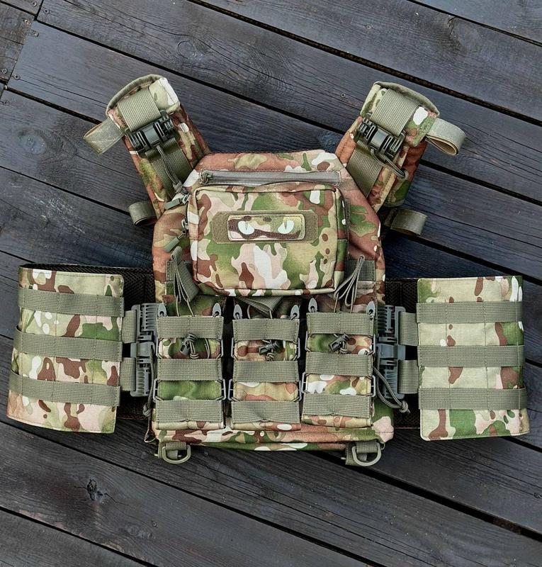 ## Плитоноска GEN.7 быстрого сброса+ 4 Подсумока Мультикам для АК/AR Водонепроницаемая прочная регулировка. VE-33 Обращаем Ваше внимание, что фурнитура может отличаться по цвету, в зависимости от партии поставки. Шеврон в комплект не входит В комплекте плитоноска 1 шт подсумок с пластиковыми боками для АК / AR 3 шт Горизонтальный подсумок 1 шт боковые карманы под мягкие баллистические пакеты 15*30 см Качественная плитоноска по стандарту НАТО оснащена боковой и верхней системой быстрого сброс, под плиту 25×30 см. - Размер плитоноски универсален, регулируется на плечах и по объему от М до XXL. - С середины прошита 3D сеткой и смягчающей подкладкой , служащий дополнительным демпфером. - Позади оснащена эвукационной ручкой. - По верху прошита системой Molle, позволяющая крепить любые подсумоки и другое дополнительное снаряжение. - По переду вшита дополнительная карман на молнии для личных нужд. - Бронеплиты вставляются снизу и фиксируются широкой системой липучек, что не даст вашим плитам выпасть или протереть крепление. Изготовлена из прочной, водонепроницаемой ткани Кордура 900D. Для пошива используется полиамидная стропа. Для ее изготовления используется стойкий к износу, суперпрочный, высококачественный полиамид. Обладает отличными свойствами: высокий уровень прочности, надежный, сможет выдержать большие нагрузки, устойчив к негативному воздействию ультрафиолета, влаги, высоких/низких температур, долговечен. Соответствует требованиям отечественных стандартов качества. Плитоноска прошита армированными нитями, что повышает срок службы изделия. Успейте заказать, количество штук по акции ограничено! Остерегайтесь подделок и низкокачественного товара, его сейчас очень много представлено под видом oригинaлa! Мы предлагаем высочайшее добротное качество товара на рынке Украины, который выполняет свою функцию и от которого вы будете получать только приятные эмоции. Почему покупают именно у нас? Отзывы и рекомендации реальных клиентов Наш магазин имеет многочисленные положительные отзывы от довольных клиентов. Вы можете ознакомиться с их опытом и рекомендациями в описании ниже и на нашем сайте, что поможет вам сделать обоснованный выбор. Прозрачность и честность Мы ведем открытую и честную политику в отношениях с клиентами и всегда идем навстречу. Все характеристики товаров, условия гарантии и обмена четко указаны на нашем сайте, что позволяет избежать недоразумений и обеспечивает доверие клиентов. Легкая система возврата товаров Мы понимаем, что иногда товар может не подойти Вам по тем или иным причинам. Поэтому мы предлагаем гибкую и прозрачную систему возврата товаров, что обеспечивает вам спокойствие и уверенность в вашей покупке. Высокий уровень обслуживания клиентов, 10 лет опыта Наши специалисты всегда готовы предоставить профессиональную консультацию и помощь в выборе товара. Мы ценим каждого клиента и стремимся сделать процесс покупки максимально комфортным и приятным. Быстрая доставка и удобные условия оплаты Мы предлагаем быструю и надежную доставку по всей стране, а также разнообразные способы оплаты, включая наличный и безналичный расчет. Наши клиенты могут выбрать наиболее удобный для себя способ получения товара. ✅ Весь товар проверяется на наличие брака перед отправкой ✅ Отзывы наших клиентов Поторопись, товара по 