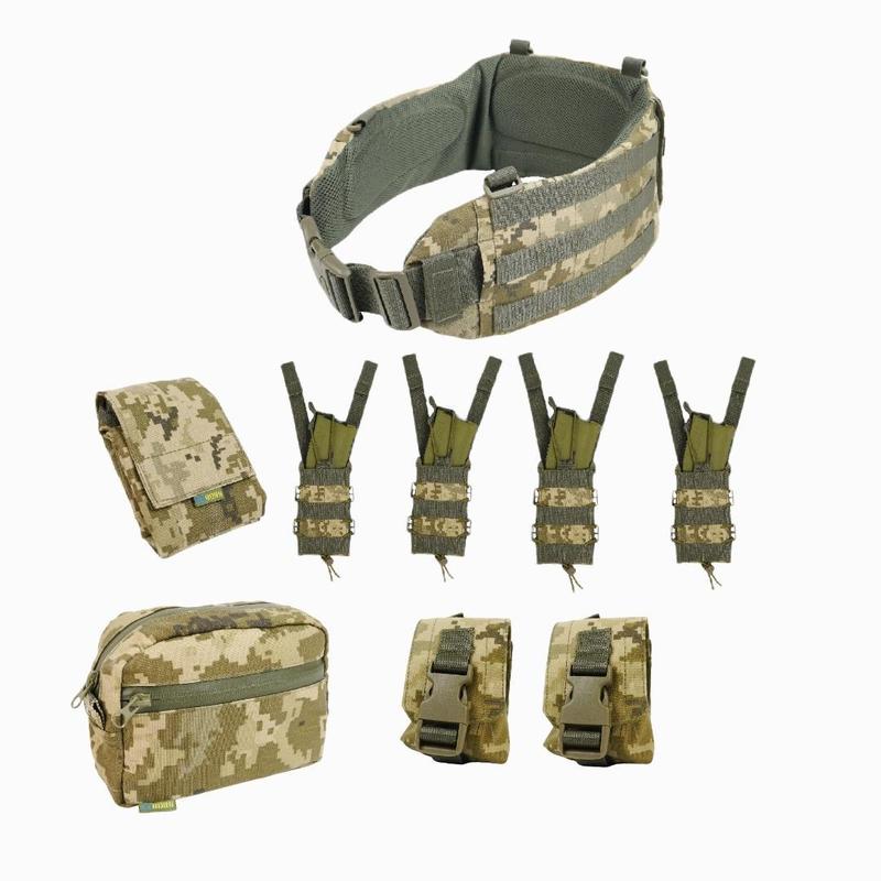 ## Пояс РПС R1 с карманом под баллистический пакет и Подсумоками для АК. Тактический пояс с минимальным объ VE-33 В комплекте Пояс РПС R1 с карманом под баллистический пакет 94x18 1 шт Магазины для АК с пластиковыми боками 4 шт Сумка сложная для сброса магазинов 1 шт подсумок под гранату 2 шт< Универсальный подсумок 1 шт Без лямок ! Минимальный обхват 104 см Максимальный обхват 120 см Длина общая 94 см Ширина 18 см Широкий тактический пояс анатомической формы изготовлен из самых современных материалов высокого качества Основная ткань - Cordura Nylon 1000D со специальным IRR-покрытием, которая не контрастирует в приборах ночного видения. Фурнитура - 100% Полиамид Внутренняя сторона пояса выполнена из 3D сетки, это способствует эффективному отводу тепла от оператора и надежной фиксации на талии. Пояс хорошо держит форму благодаря жестким пластиковым вставкам внутри. В то же время он достаточно мягкий с внутренней стороны благодаря использованию наполнителя общей толщиной 15мм. Такое сочетание позволило получить отличные амортизирующие свойства и облегчить нагрузку на тело во время длительного использования. Все сторопы полиамидны. Они сверхпрочны, не растягиваются и не впитывают влагу. Основная стропа на поясе шириной 50мм с фастексом Coplok от Woojin Plastic (Южная Корея) с дополнительной защитой от случайного раскрытия. Есть возможность ее замены на любой другой пояс. Одной из важнейших особенностей пояса является карман на велкро, из-за которого есть возможность замены наполнителя на противоосколочный баллистический пакет. Пояс имеет анатомический крой и выглядит треугольником, имеет подсредненный угол, который предотвращает убывание. На верхней части пояса есть четыре точки крепления, что дает возможность использовать его с любой подвесной системой и сделать из пояса полноценный РПС. На нижней части два крепления для тактической сидушки или каремата. На боковых частях три ряда с-ми molle для крепления подсумоков. Задняя часть увеличена и выполнена с 4-мя рядами molle, что позволяет максимально снарядить пояс необходимыми подсумоками. Сумка для сброса Вмещает до 8 магазинов Материал: Кордура 1000D: Удобный при использовании. Ободок подсумока сделан жестким благодаря чему хорошо держит форму в открытом положении. Размер в сложенном виде: 13.5 см. × 11 см. × 4.5 см . Разложенном: 26 см. × 34 см. Универсальный подсумок Размеры: 20х15х5 см Материал: Cordura Nylon 1000D Успейте заказать, количество штук по акции ограничено! Остерегайтесь подделок и низкокачественного товара, его сейчас очень много представлено под видом oригинaлa! Мы предлагаем высочайшее добротное качество товара на рынке Украины, который выполняет свою функцию и от которого вы будете получать только приятные эмоции. Почему покупают именно у нас? Отзывы и рекомендации реальных клиентов Наш магазин имеет многочисленные положительные отзывы от довольных клиентов. Вы можете ознакомиться с их опытом и рекомендациями в описании ниже и на нашем сайте, что поможет вам сделать обоснованный выбор. Прозрачность и честность Мы ведем открытую и честную политику в отношениях с клиентами и всегда идем навстречу. Все характеристики товаров, условия гарантии и обмена четко указаны на нашем сайте, что позволяет избежать недоразумений и обеспечивает доверие клиентов. Легкая система возврата товаров Мы понимаем, что иногда товар мо