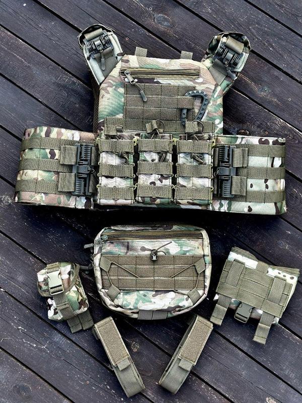 Комплект плитоноска быстрого сброса с боковыми карманами + напашник и 7 подсумоков - набор...