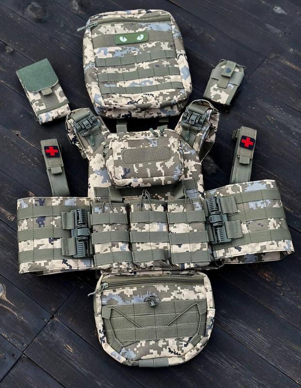 ## Комплект Плитоноска быстрого сброса с боковыми карманами + напашник+ и 7 Подсумоков - плитоноска НА VE-33 Обращаем Ваше внимание, что фурнитура может отличаться по цвету, в зависимости от партии поставки. Шевроны в комплект не входят! В комплекте плитоноска 1 шт Тройной подсумок для АК 1 шт Рюкзак 1 шт подсумок для плитоноски 1 ш подсумок под турникет 2 шт подсумок для телефона 1 шт подсумок для рации 1 шт >Напашник 1 шт боковые карманы под мягкие баллистические пакеты 15*30 см Качественная плитоноска по стандарту НАТО оснащена боковой и верхней системой быстрого сброса, под плиту 25×30 см. - Размер плитоноски универсален, регулируется на плечах и по объему от М до XXL. - С середины прошита 3D сеткой и смягчающей подкладкой, служащей дополнительным демпфером.< br />- Позади оснащена эвукационной ручкой. - По верху прошита система Molle, позволяющая крепить любые подсумоки и другое дополнительное снаряжение. - По переду вшита дополнительная карман на молнии для личных нужд. />- Бронеплиты вставляются снизу и фиксируются широкой системой липучек, что не даст вашим плитам выпасть или протереть крепеж. Изготовленная из прочной, водонепроницаемой ткани кордура. Для пошива используется полиамидная стропа. Для ее изготовления используется стойкий к износу, суперпрочный, высококачественный полиамид. Обладает отличными свойствами: высокий уровень прочности, надежный, сможет выдержать большие нагрузки, устойчив к негативному воздействию ультрафиолета, влаги, высоких/низких температур, долговечен. Соответствует требованиям отечественных стандартов качества. Плитоноска прошита армированными нитями, что повышает срок службы изделия. Компактный и легкий рюкзак является незаменимым элементом снаряжения профессиональных военных. Выполненный полностью из прочного, водонепроницаемого материала оксфорд 600d. Основные характеристики: • размер (см): 25/30/10 • крепеж на системе MOLLE • имеет в середине 2 объемных кармана • может использоваться как рюкзак для гидросистемы. • имеет велкро панель для креплений шевронов и патчей. • закрывается на молнию. • дополнительные стропы MOLLE спереди. • усиленные швы • армированные нити Успейте заказать, количество штук по акции ограничено! Остерегайтесь подделок и низкокачественного товара, его сейчас очень много представлено под видом oригинaлa! Мы предлагаем высочайшее добротное качество товара на рынке Украины, который выполняет свою функцию и от которого вы будете получать только приятные эмоции. Почему покупают именно у нас? Отзывы и рекомендации реальных клиентов Наш магазин имеет многочисленные положительные отзывы от довольных клиентов. Вы можете ознакомиться с их опытом и рекомендациями в описании ниже и на нашем сайте, что поможет вам сделать обоснованный выбор. Прозрачность и честность Мы ведем открытую и честную политику в отношениях с клиентами и всегда идем навстречу. Все характеристики товаров, условия гарантии и обмена четко указаны на нашем сайте, что позволяет избежать недоразумений и обеспечивает доверие клиентов. Легкая система возврата товаров Мы понимаем, что иногда товар может не подойти Вам по тем или иным причинам. Поэтому мы предлагаем гибкую и прозрачную систему возврата товаров, что обеспечивает вам спокойствие и уверенность в вашей покупке. Высокий уровень обслуживания клиентов, 10 лет 