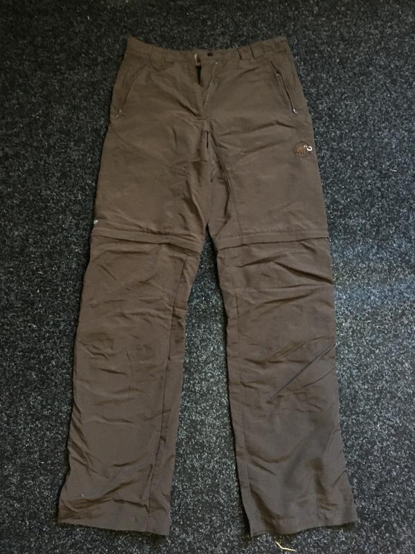 Очень крутые Zip-Off брюки от MAMUT, брюки которые легко становятся шортами, все на фурнитуре YKK, оригинальный патч, и надпись сзади, коричневый цвет, брюки как новые Стан 5/5 Размер 34