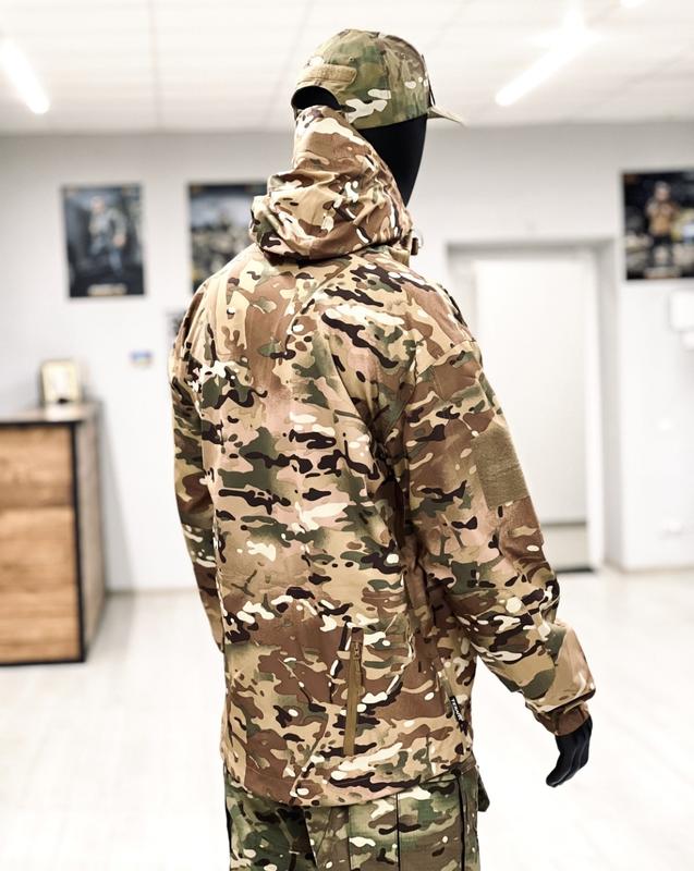 Размер XXL. Замеры: -Обхват груди 130 см -длина по спине 80 см -внешняя длина рукава 68 см -ширина у плечах 58 см Texar ECWCS Hardshell Comodo куртка - Arid MC Camo эта куртка относится к классу дождевиков Куртка Hardshell Comodo от известного производителя тактического снаряжения Texar. Данная куртка используется среди экстремальных погодных условий, при покорении горных вершин, выполнении тактических и спасательных операций. Отлично защищает от дождя, ветра, снега. Куртка имеет мембрану, которая обладает влаго- и ветрозащитными свойствами и в то же время способна "дышать”, что обеспечивает исключительную комфортность в использовании. Она обладает превосходными эластичными свойствами, благодаря чему куртка не сковывает движения. Куртка имеет удобный капюшон для защиты от дождя, снега и ветра. Подмышками присутствует система вентиляции и отвода лишнего тепла. На рукавах присутствуют 2 кармана, которые застегиваются на молнии, а также на правом предплечье есть еще один дополнительный карман для различного снаряжения. Сзади ниже спины присутствует дополнительный карман, в котором удобно держать перчатки, или шапку, также она служит системой отвода тепла методом расстегивания молнии. В районе груди по левой стороне есть большой карман для разнообразного необходимого снаряжения. Манжеты рукавов регулируются с помощью велкро. На плечах присутствуют велкро панели для крепления отличных шевронов, патчей. Вес составляет всего 900 г., что делает данную куртку удобной при транспортировке. Все изделия компании Texar активно используются туристами, альпинистами, военными, экстремалами и людьми, которые любят активный отдых на природе. Основные характеристики: • Материал: polyester/spandex; • Удобный капюшон; • Полная защита от неблагоприятных погодных условий.