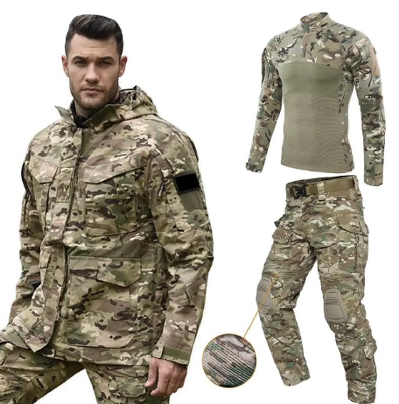 В комплект входит: 1. Тактические штаны с наколенниками Эластичные вставки над коленом и между ног дают дополнительную возможность для растяжения материала. 1) Поставляются с набором съемных коленных вставок 2) Уникальная низкопрофильная система регулировки талии и система регулировки высоты наколенника делают их очень функциональными. А также с регулировкой размера по задней части талии, положение колен и косточек. 3) До 10 карманов разного размера, большая грузоподъемность. Уникальный дизайн кармана выглядит плоским вперед, но выпуклая боковая вставка расширяется, обеспечивая надежное хранение вашего служебного снаряжения. Задние карманы на молнии, большие передние карманы на бедрах. 4) молния YKK, гладкая и надежная. Тефлоновое покрытие ткани дыпящей реп-стоп и водоотталкивающей. 2.Тактическая рубашка с длинным рукавом Материал: Полиэстер/хлопок Цвет: Мультикам Вес: 340 г Аккуратный и практичный убакс, легкая и дышащая рубашка обеспечивает отличный комфорт и свободу движений. Молния 1/4 спереди; Хорошо для весны, лета, осени и зимы 3.Куртка мультикам Материал: полиэстер + хлопок Характеристика: 1. Капюшон можно сложить 2. Прочная верхняя молния, гладкая. 3. Застежка-молния на липучке, двойная защита 4. Манжеты на липучке, регулируются 5. Нижняя часть на магните 6. Герметичная строка 7. Износостойкая и стойкая к царапинам ткань, ветрозащитная 8. Дизайн с несколькими карманами, в общей сложности 10 карманов: 6 карманов спереди снаружи, 2 кармана на рукавах и 2 кармана внутри. 9. Регулируемый пояс со скрытой резинкой 10. Дышащая сетка внутри, более удобная