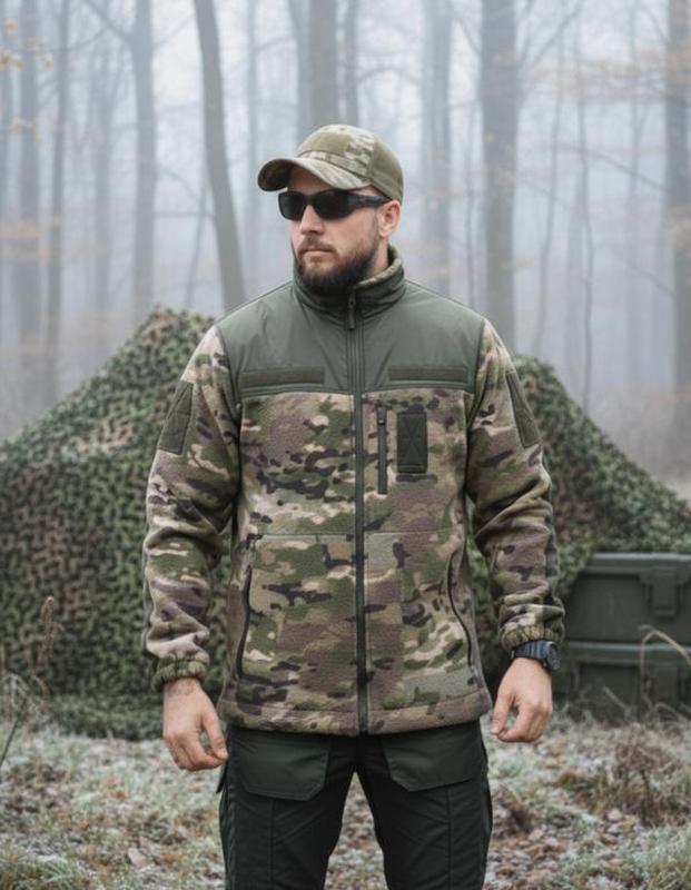 на модели размер С рост 175 вес 75 Тактическая флисовая куртка Multicam Polar 280Материал: флис POLAR 280 Вставки: прочная плащевка Липучки под нашивки: есть Размеры: полномерные Цвет: Multicam Теплая тактическая флисовая куртка Multicam - практичный и надежный вариант для военных, охотников и любителей активного отдыха. Изготовлена из плотного флиса POLAR 280, который отлично сохраняет тепло и при этом остается дышащим материалом. Усиленные вставки из плащёвки повышают износостойкость и защищают от ветра и влаги. Продуманные карманы, липучки под нашивки и эргономичный крой делают эту модель идеальной для службы и повседневной носки. Преимущества: Плотный и теплый флис POLAR 280; Усиленные участки из плащевки – защита от ветра и износа; Удобные молнии и карманы; Липучки под нашивки и патчи; Универсальный крой, подходит под бронежилет или верхнюю одежду. Размер по сетке: РазмерПлечиГрудиРукавДовжинаS41496870M42506971L44516971XL445472732XL475873733XL485874