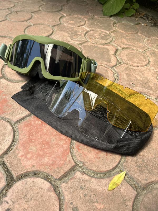 Маска тактическая в цвете олива. В комплект входит: - две линзы - два чехла