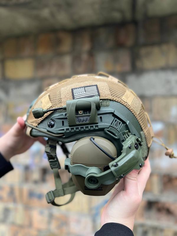 КОМПЛЕКТ: сертифицированный шлем Fast в сборе с активными наушниками Walkers, крепление чебурашка, фонарик MPLS и кавер🎁. Комплект с фонариком MPLS на 4 света (красный, белый, зеленый, инфракрасный). цена 8890 грн. Комплект без фонарика 7890 грн. Комплект с экшен-камерой RunCam Helmet +4500грн. к цене. Кавер в подарунок. КОМПЛЕКТАЦИЮ МОЖЛИВО СМЕНИТЬ. Крепление : чабурашки. Уровень защиты: NIJ IIIA (NIJ Level Equivalent) Размер: M, L, XL Шлемы сертифицированы в Украине. Копию протокола прилагается к посылке. Материал: UHMW-PЕ Отдельно можно купить шлем.
