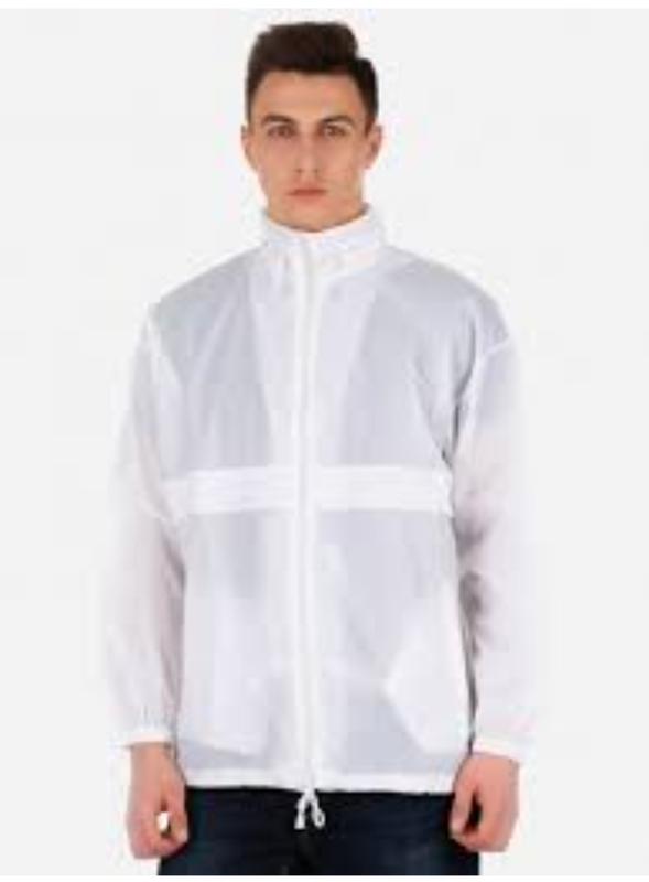 Белый дождевик с воротником.Застегается на молнию.По бокам карманы.Снизу на затяжке.На рукавах резинки. Капюшон прячется в воротник. Подойдёт и женщине и мужчине. Состав:100% нейлон. Состояние идеальное. Размер указан М. Ориентируйтесь на замеры. Замеры:ПОГ-59 см;ПОТ-60 см;ПО низа-59 см; плечи-55 см;рукав-53 см;длина-65 см. Первое фото, как выглядит на человеке. Пересылка.