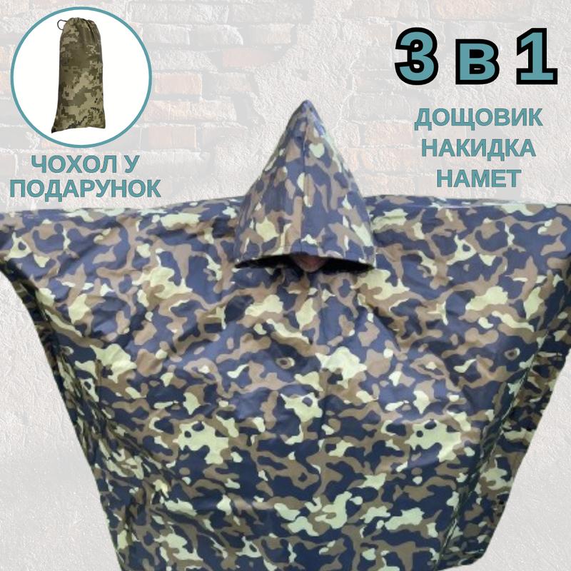 Пончо 3в1 камуфляж военный дождевик армейский тактический дождевик накидка камуфляж от дож...