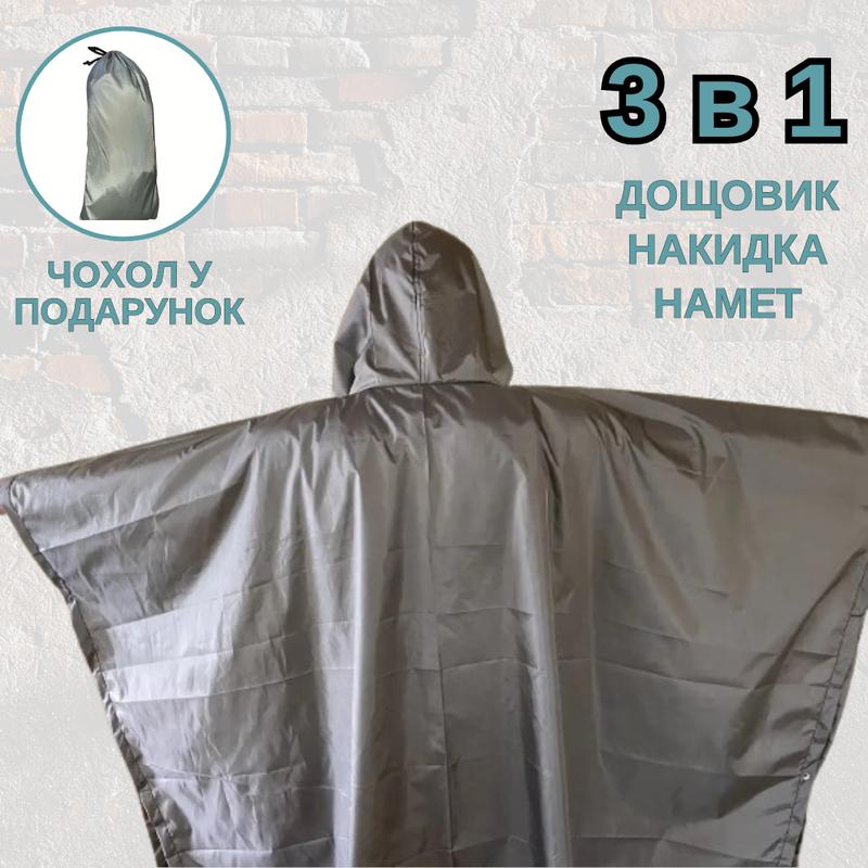 Пончо 3в1 дождевик накидка палатка серый армейский тактический пончо-накидка от дождя для...
